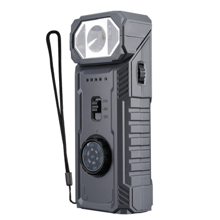 聚泛雙光,5檔調光,手搖發電,SOS警報,FM/AM/SW波段收音機,燈頭可180度旋轉,磁吸安裝,便捷吊繩,電量指示...