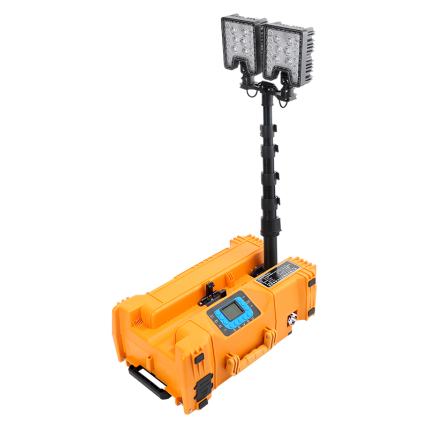 聚泛雙光,紅藍閃,無極調光,遠程遙控,手機APP遙控,360°環照,五節桿升縮,升起高度達到3.8M,可視距離達1Km,三角支腿。...