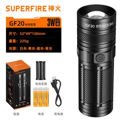 白色強光:1100LM/ 黃色強光:1100LM/藍光波長:450nmLM
