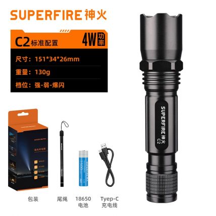 USB直充手電,中置開關易操作
