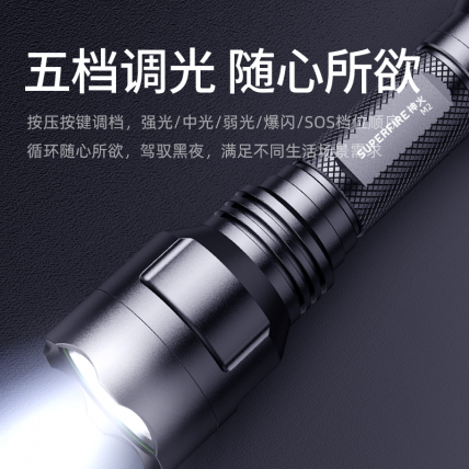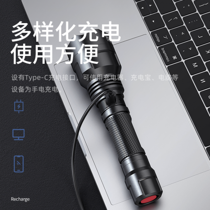 伸縮調(diào)焦,5檔調(diào)節(jié)強光遠射,快充接口充電