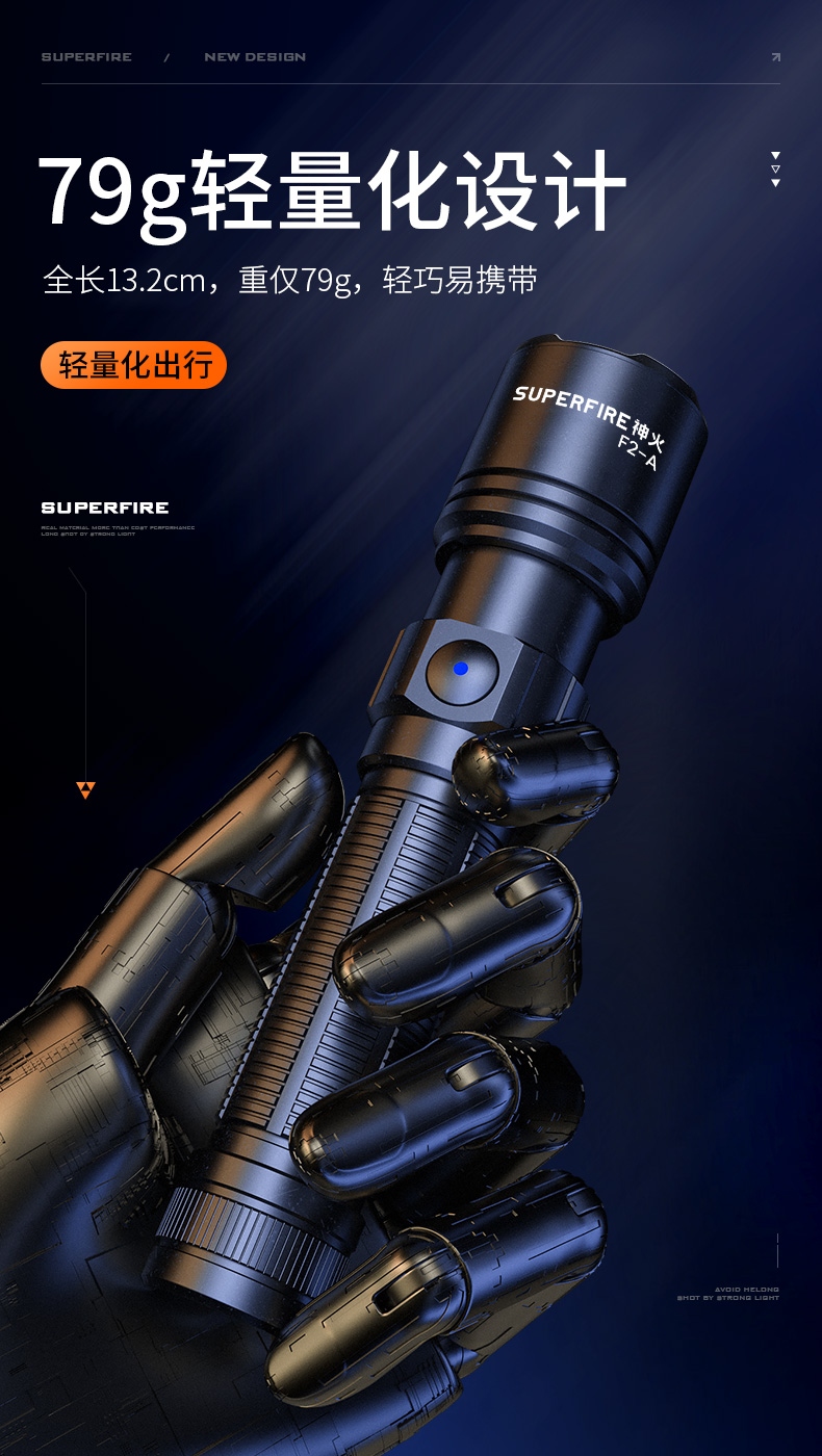 1、伸縮調焦、聚泛隨心。 2、鋁合金筒身、防摔抗擊。