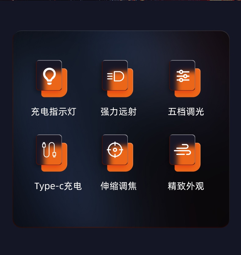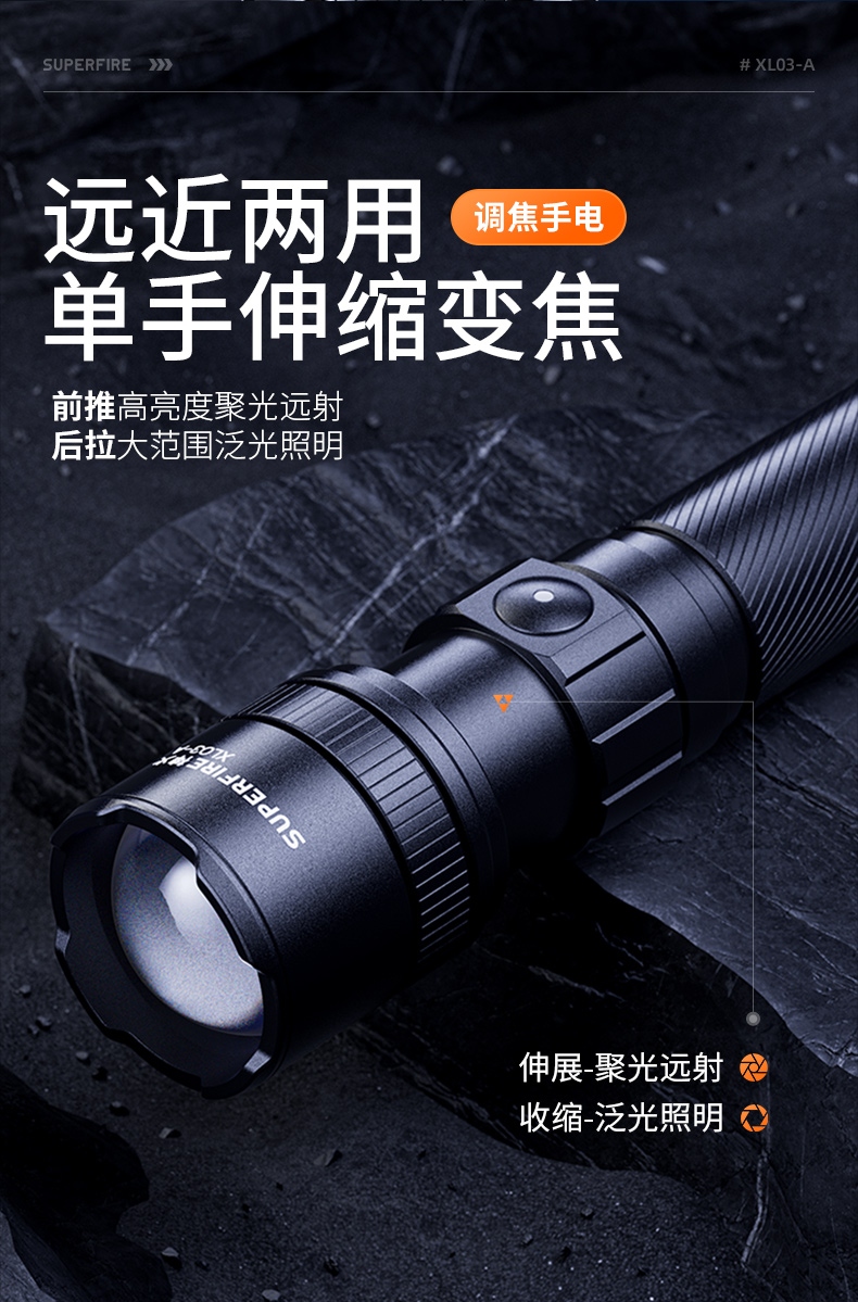1、多檔調(diào)光、可滿足不同場景下的使用需求。 2、專利外觀,時尚精致,小巧便攜。 3、伸縮調(diào)焦、聚泛隨心。