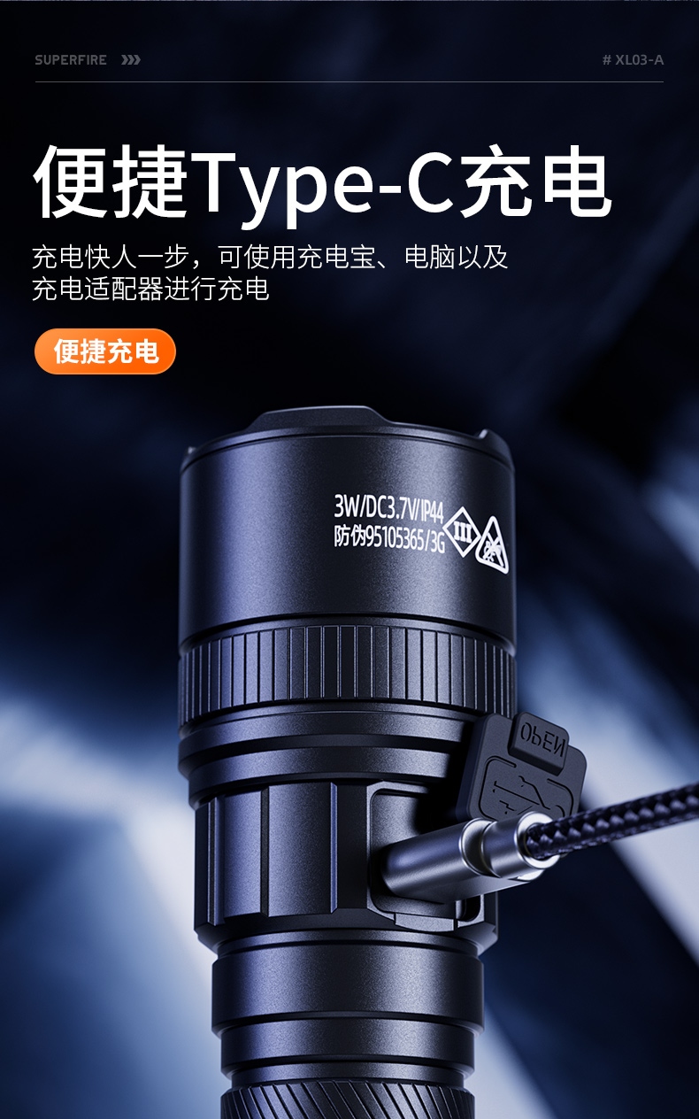 四檔調(diào)光 Type-C充電 電量顯示 鋁合金筒身 持久續(xù)航 強力防水