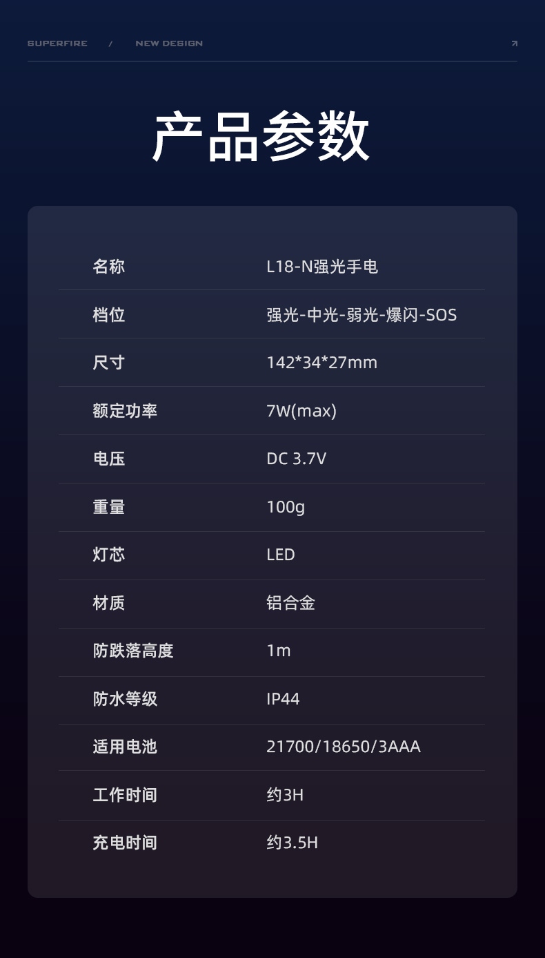 SUPERFIRE神火手電筒L18-N