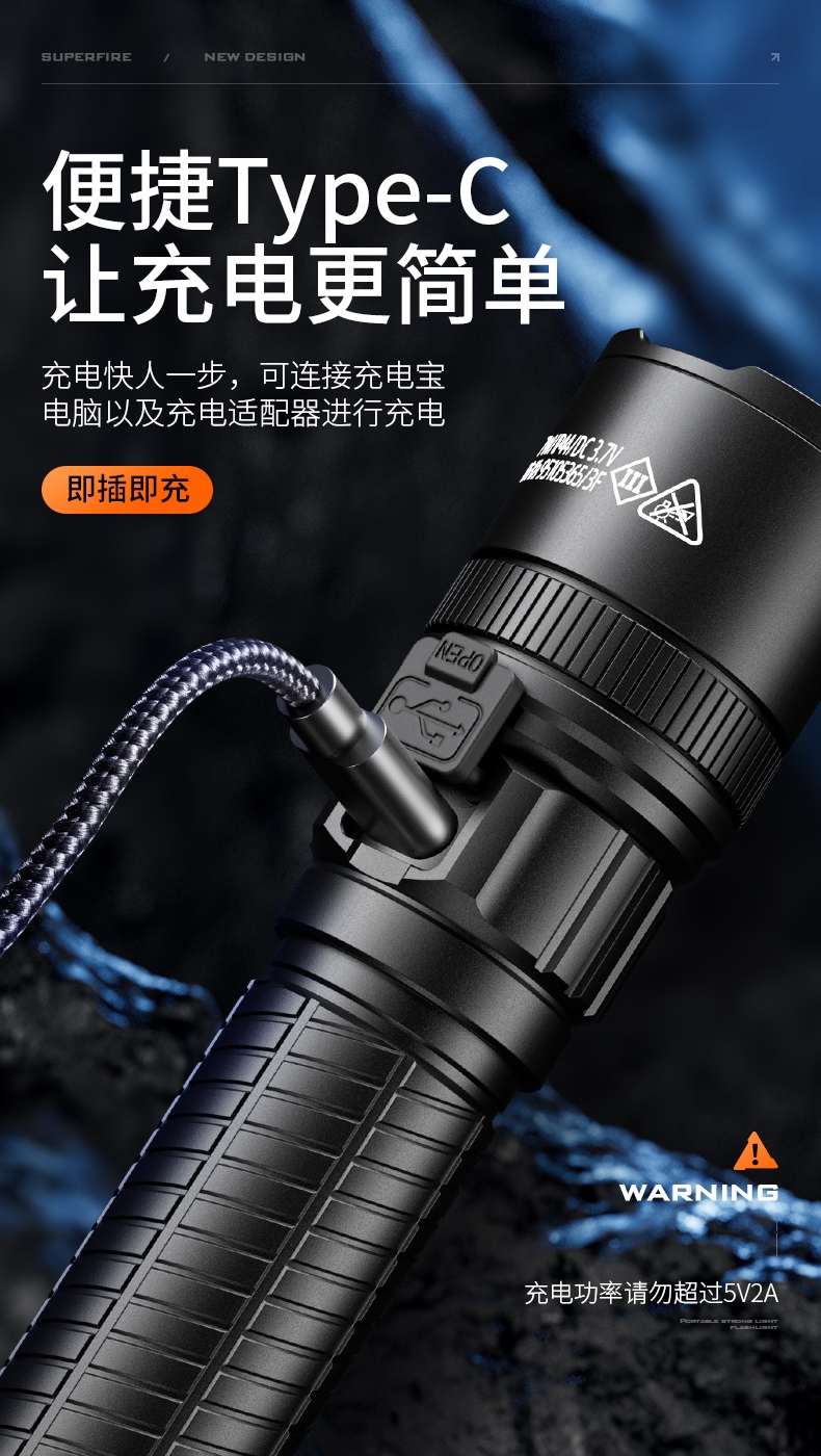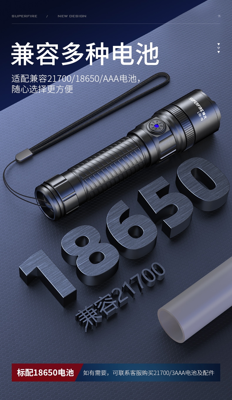 1、伸縮調(diào)焦、聚泛隨心。 2、多電池兼容,兼容21700/18650/3AAA電池。