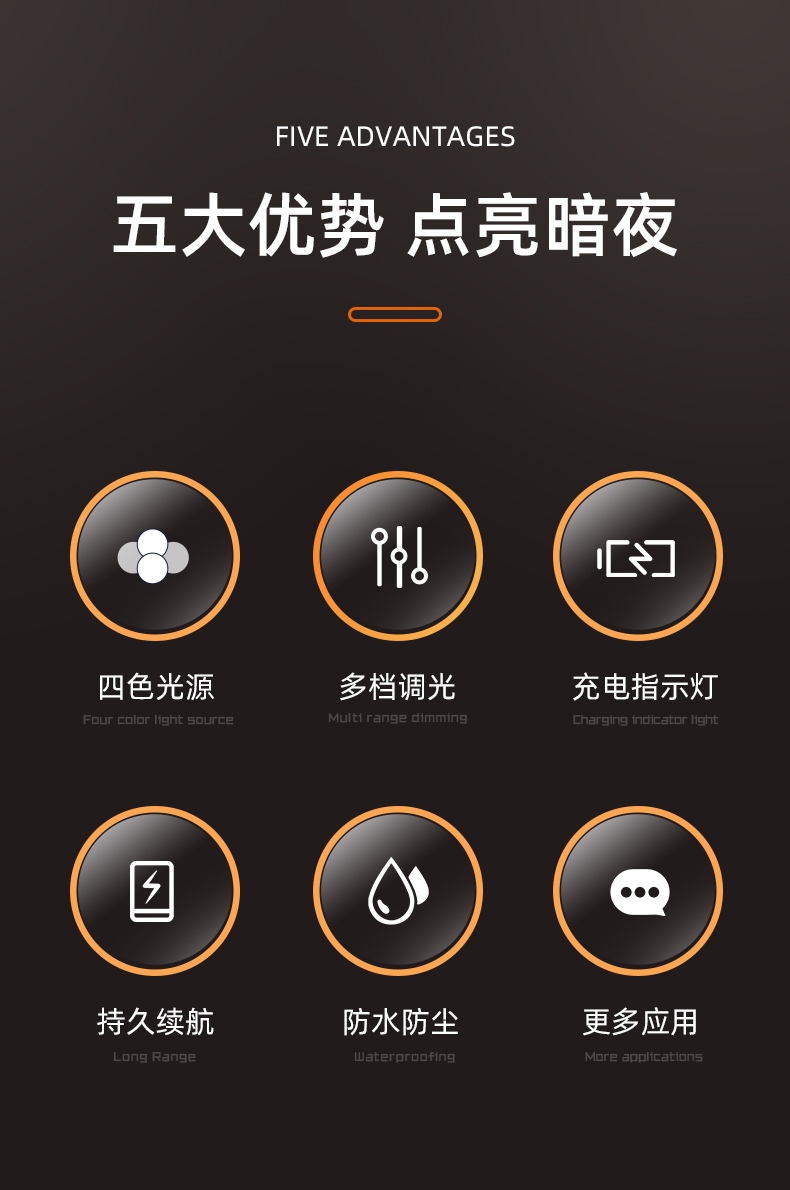 四色調(diào)光 充電指示 尾部警示燈