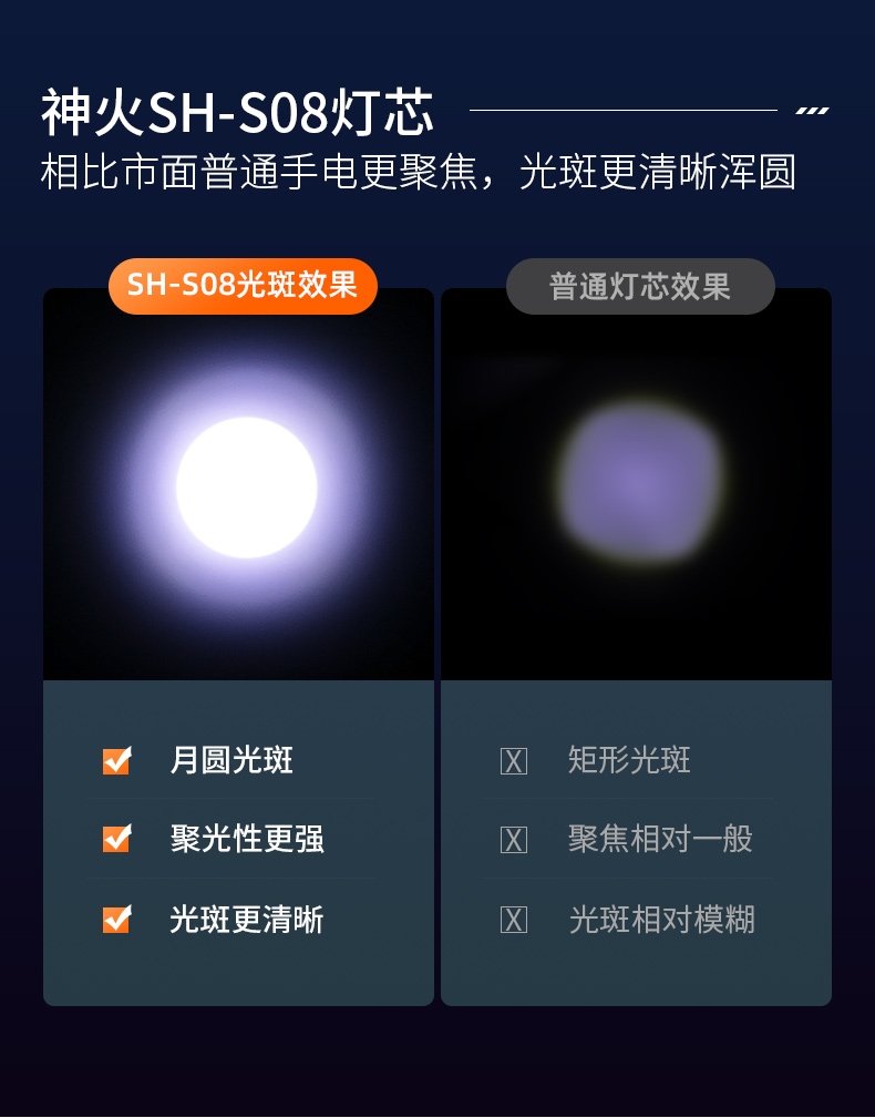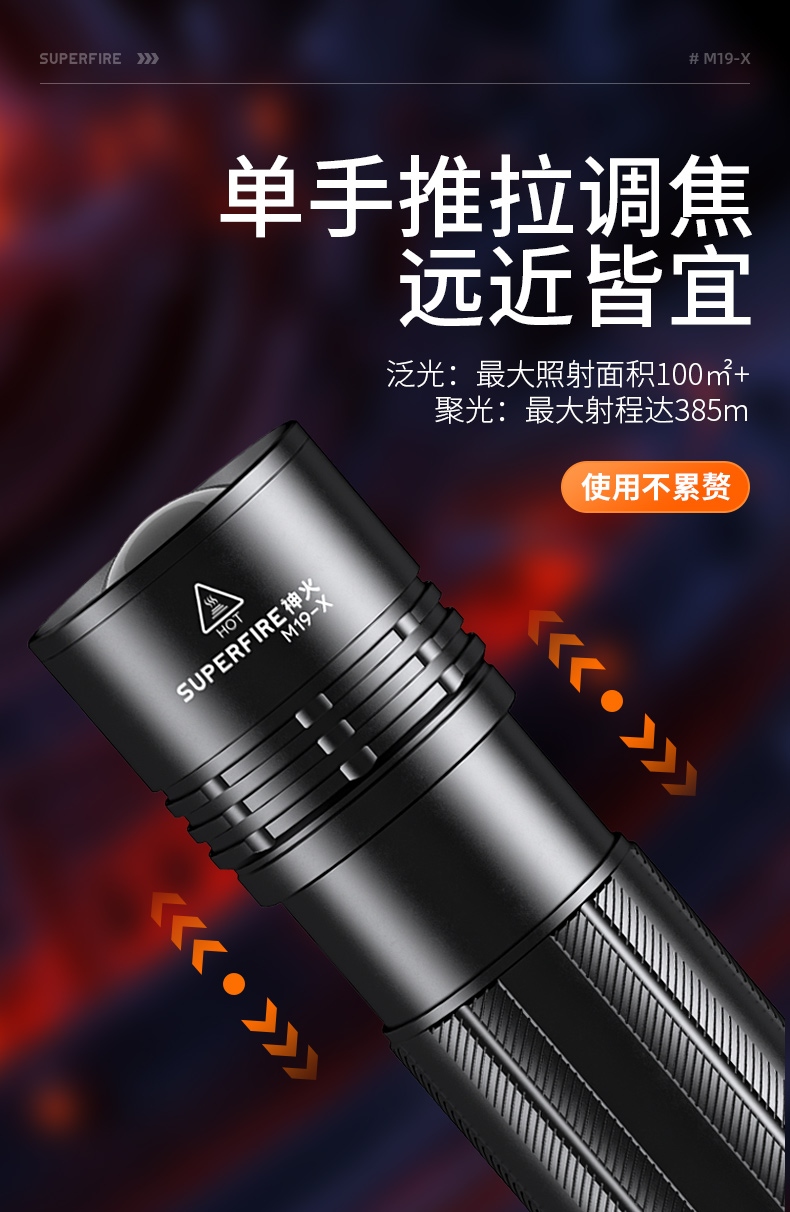 1、推拉燈頭可實(shí)現(xiàn)伸縮調(diào)焦。 2、圓形光斑,照明效果更好。