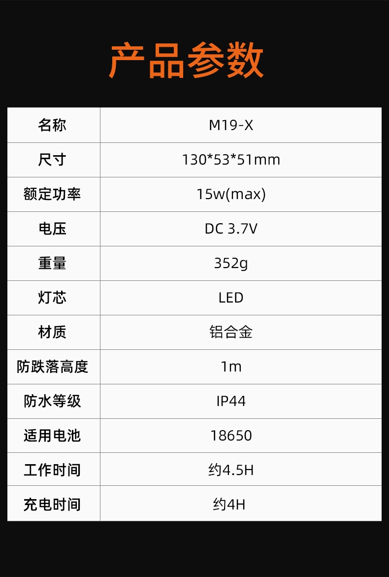 4、最高約4.5H續(xù)航,有效滿足長時(shí)間照明使用。