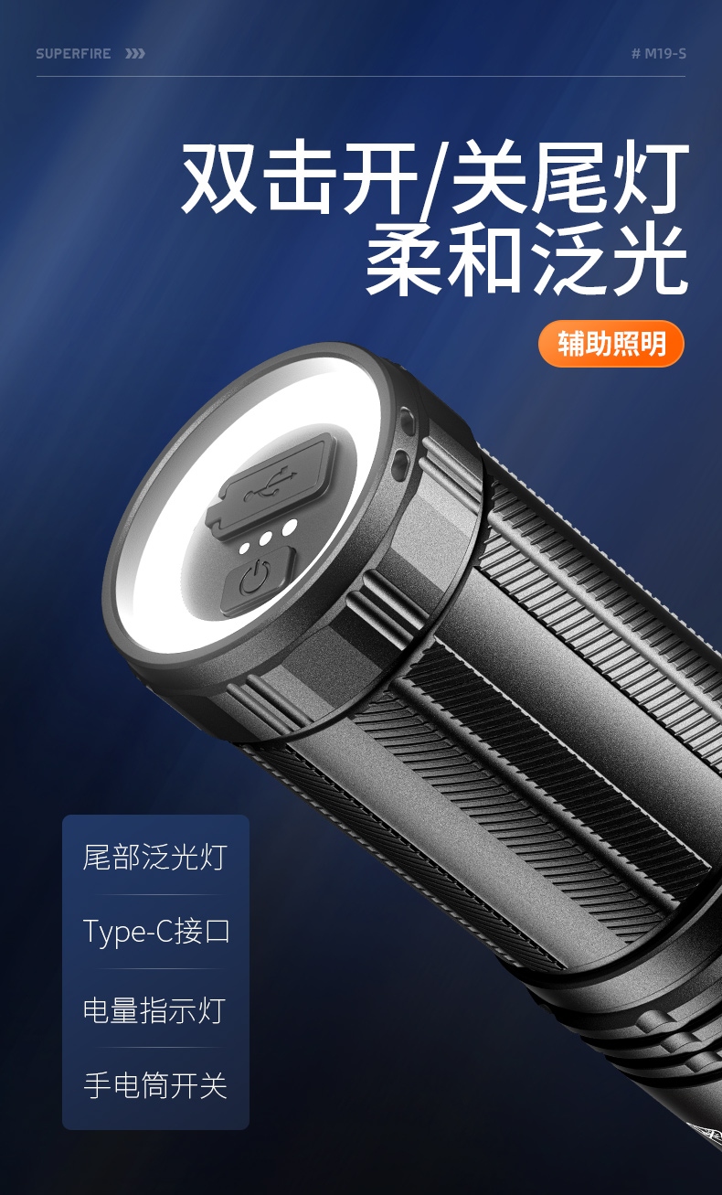 1、千米遠射,射程更遠,光斑更聚焦。 2、進口燈珠,亮度高,照明效果更好。 3、前后雙按鍵,光源一鍵點亮,高亮瞬間開啟。