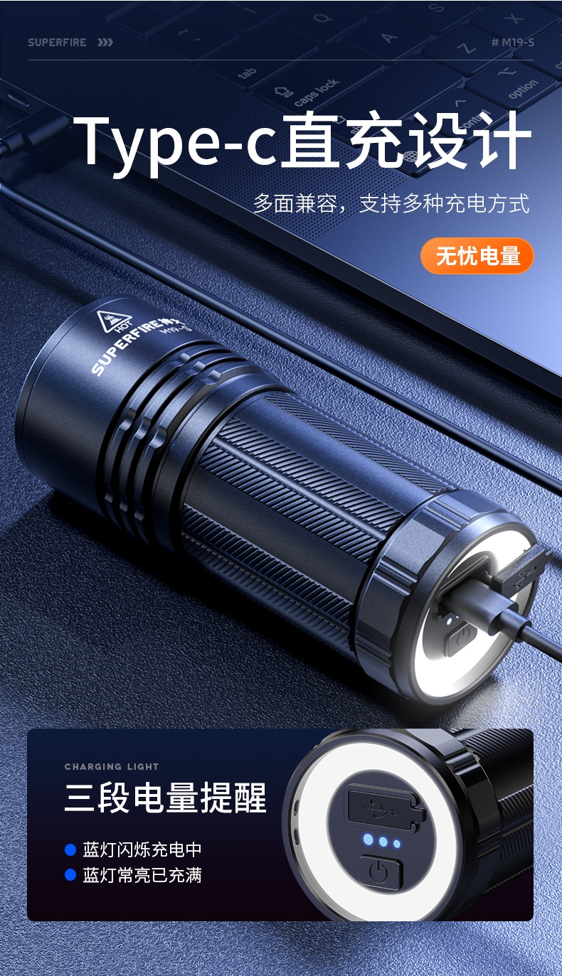四檔調光 Type-C充電 電量顯示 鋁合金筒身 持久續航 強力防水