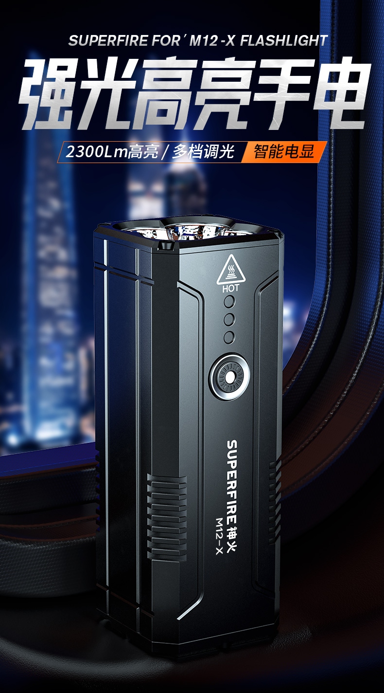 2、最高亮度2300LM,多檔照明,滿足不同場景的使用要求。