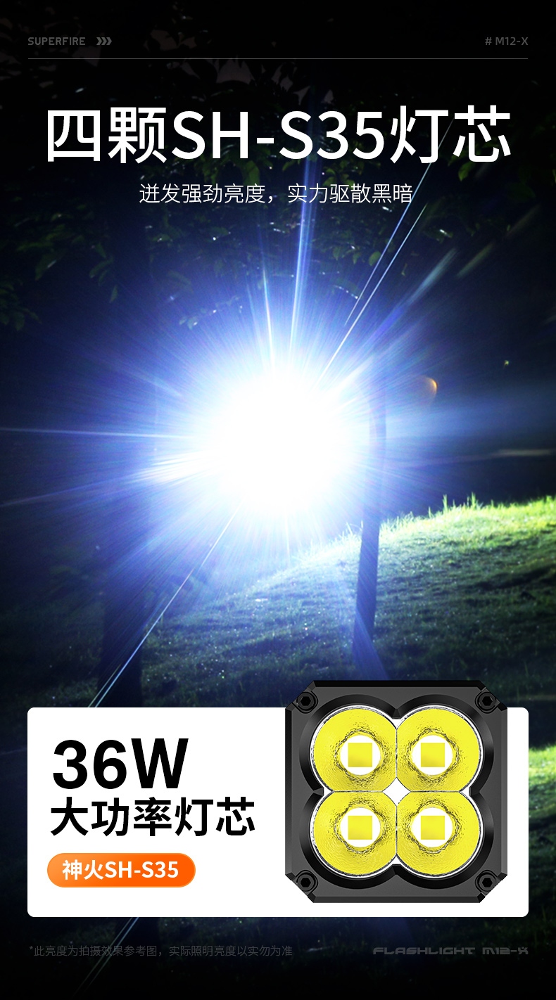 1、大尺寸鋁合金光杯,光斑更圓潤。 2、新型高亮遠射燈珠,40W大功率,亮度高,照明效果好。