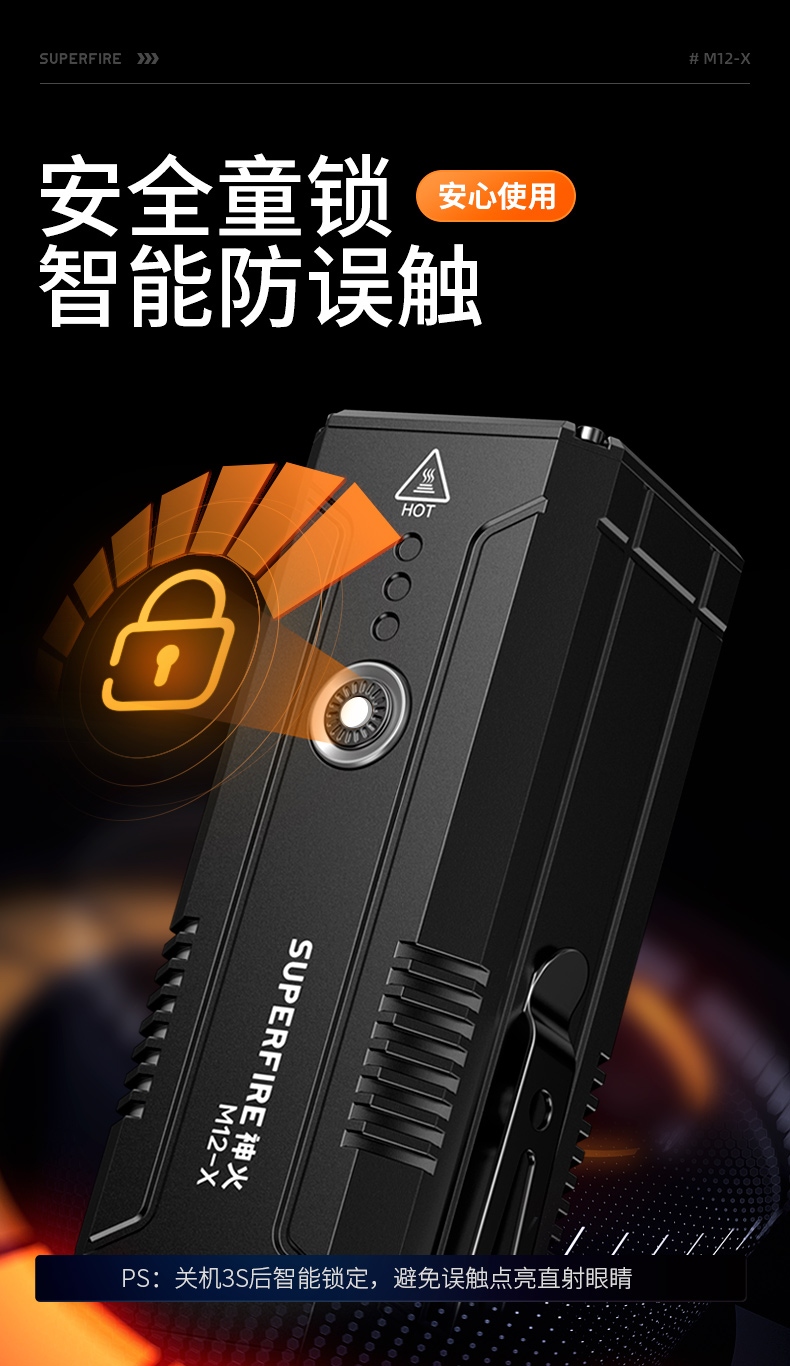 1、千米遠射,射程更遠,光斑更聚焦。 2、進口燈珠,亮度高,照明效果更好。 3、前后雙按鍵,光源一鍵點亮,高亮瞬間開啟。