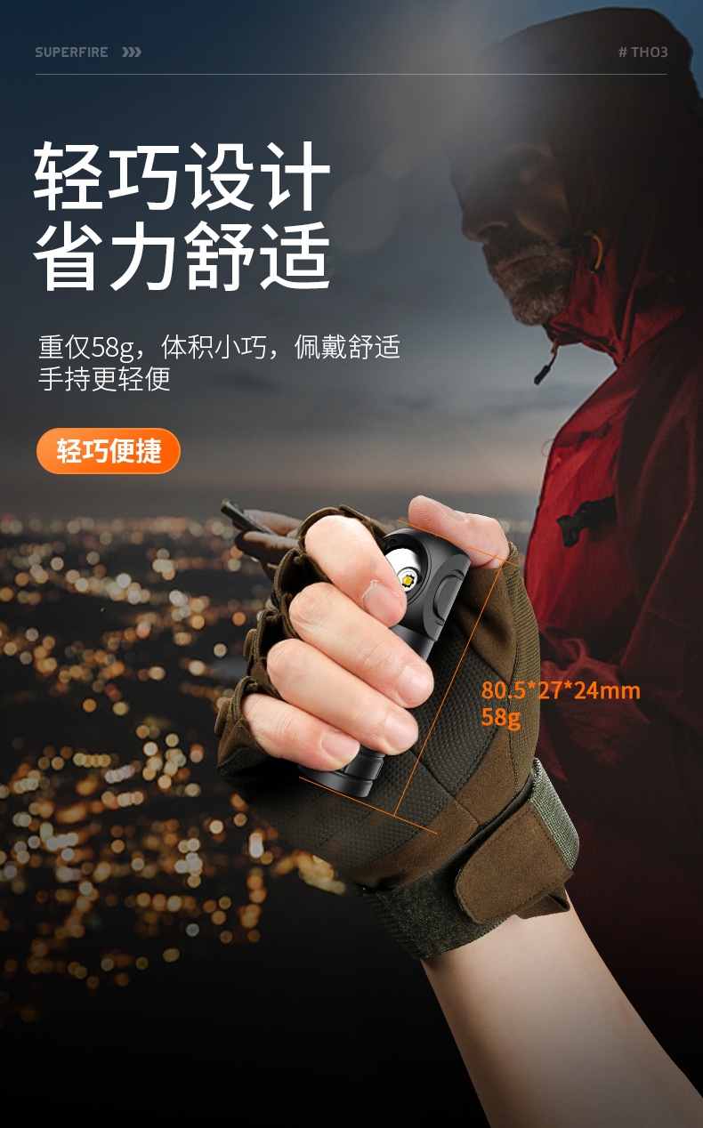 1.一燈兩用,既是小巧頭燈也是拐角手電。