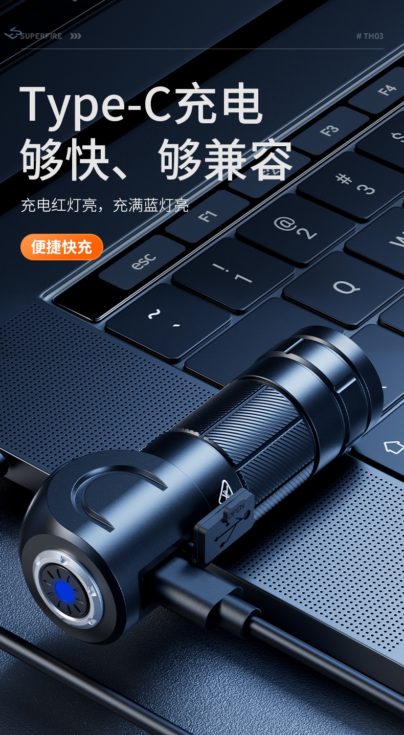 四檔調(diào)光 Type-C充電 電量顯示 鋁合金筒身 持久續(xù)航 強(qiáng)力防水