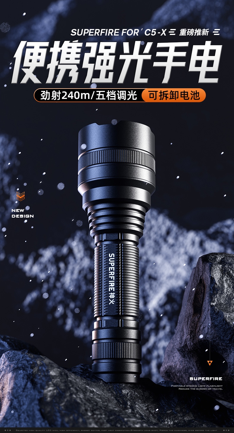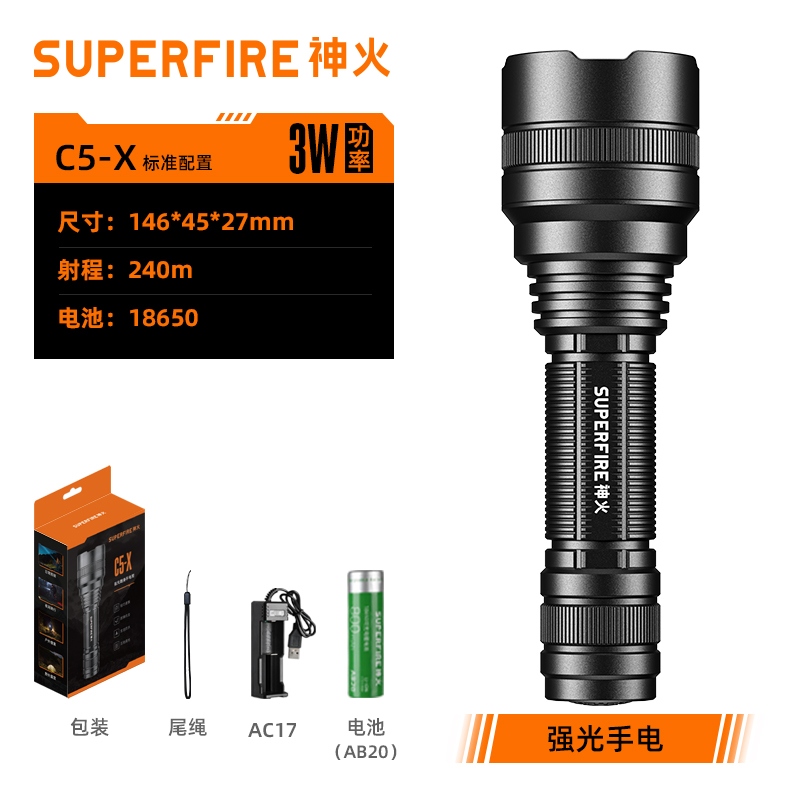 1、千米遠射,射程更遠,光斑更聚焦。 2、進口燈珠,亮度高,照明效果更好。 3、前后雙按鍵,光源一鍵點亮,高亮瞬間開啟。