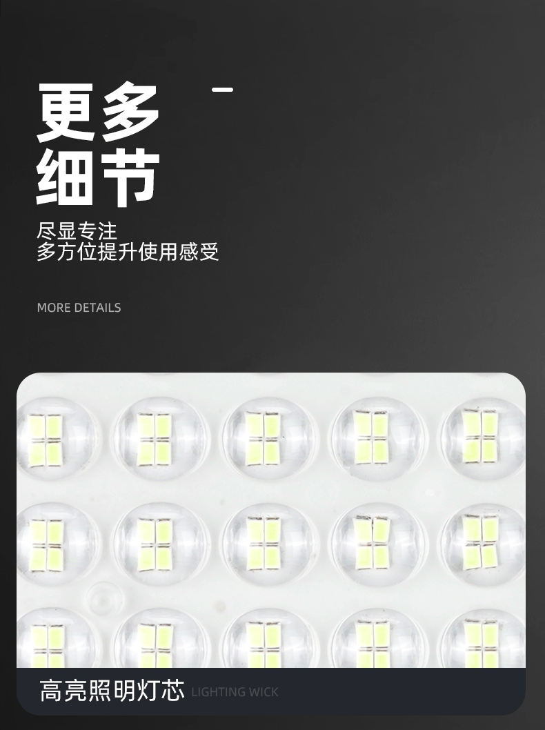 1、大尺寸鋁合金光杯,光斑更圓潤。 2、新型高亮遠射燈珠,40W大功率,亮度高,照明效果好。