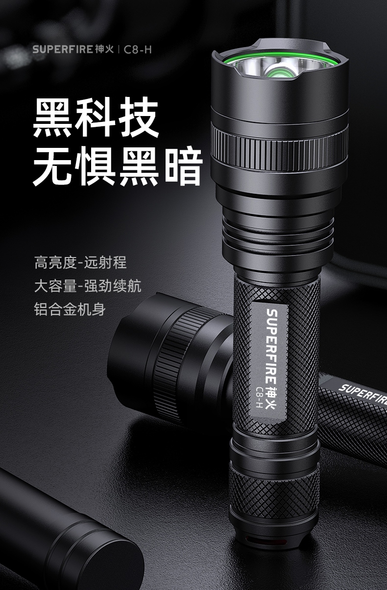 1、千米遠射,射程更遠,光斑更聚焦。 2、進口燈珠,亮度高,照明效果更好。 3、前后雙按鍵,光源一鍵點亮,高亮瞬間開啟。
