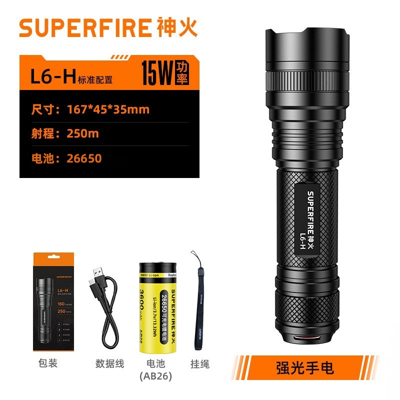 新款15W大功率手電,隱藏式直充防水性能更好,支持快充,可兼容18650/26650/21700電池,充電需按下開關(guān)后1-2秒亮紅燈表示充電中,充滿亮綠燈,充電完成后按下開關(guān)此時關(guān)閉燈具。