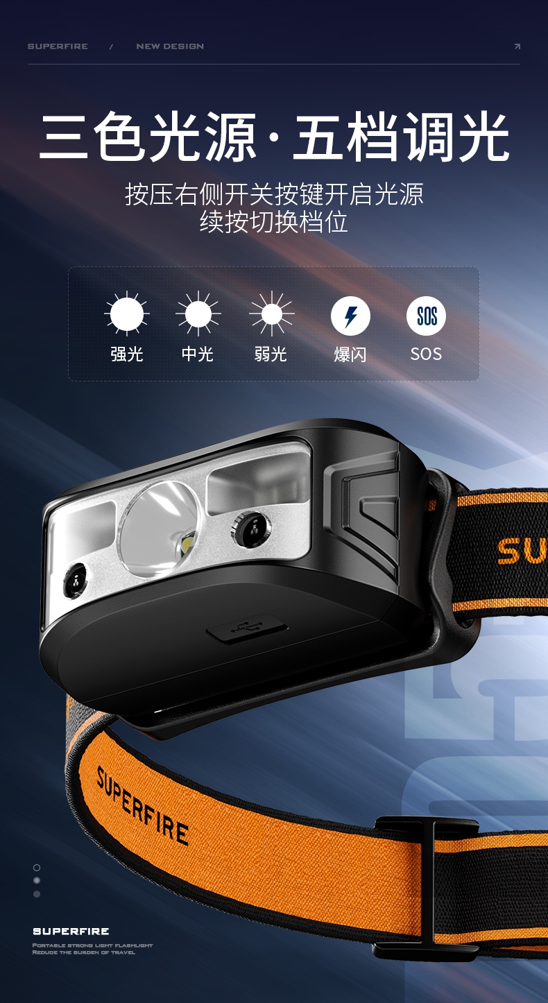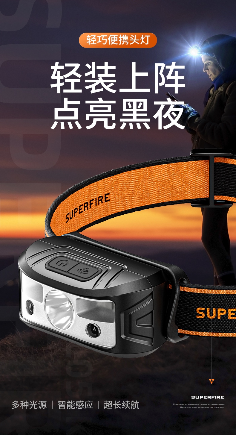 5.此款頭燈款式潮流、設(shè)計小巧、攜帶方便、頭帶材質(zhì)柔軟、可自由拆卸、便于清洗。