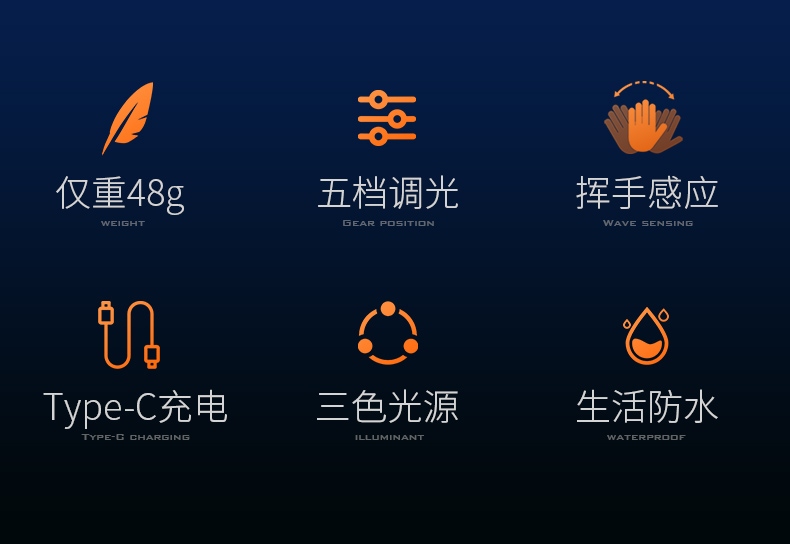 1.單擊頂部右側(cè)開關(guān)按鍵開啟光源,續(xù)按循環(huán)調(diào)檔(強(qiáng)光-中光-弱光-爆閃-SOS-關(guān));任意檔位雙擊開啟暖光,單擊續(xù)按紅光-紅光爆閃-關(guān),任意檔位長按2S關(guān)閉光源。 2.單擊頂部左側(cè)感應(yīng)按鍵開啟/關(guān)閉感應(yīng)功能,同步開啟感應(yīng)指示燈提醒。