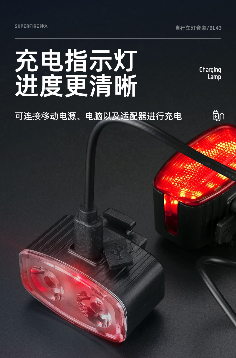 多檔調(diào)光|車夾綁帶|充電指示燈 自行車前后燈,夜間騎車出行更安全