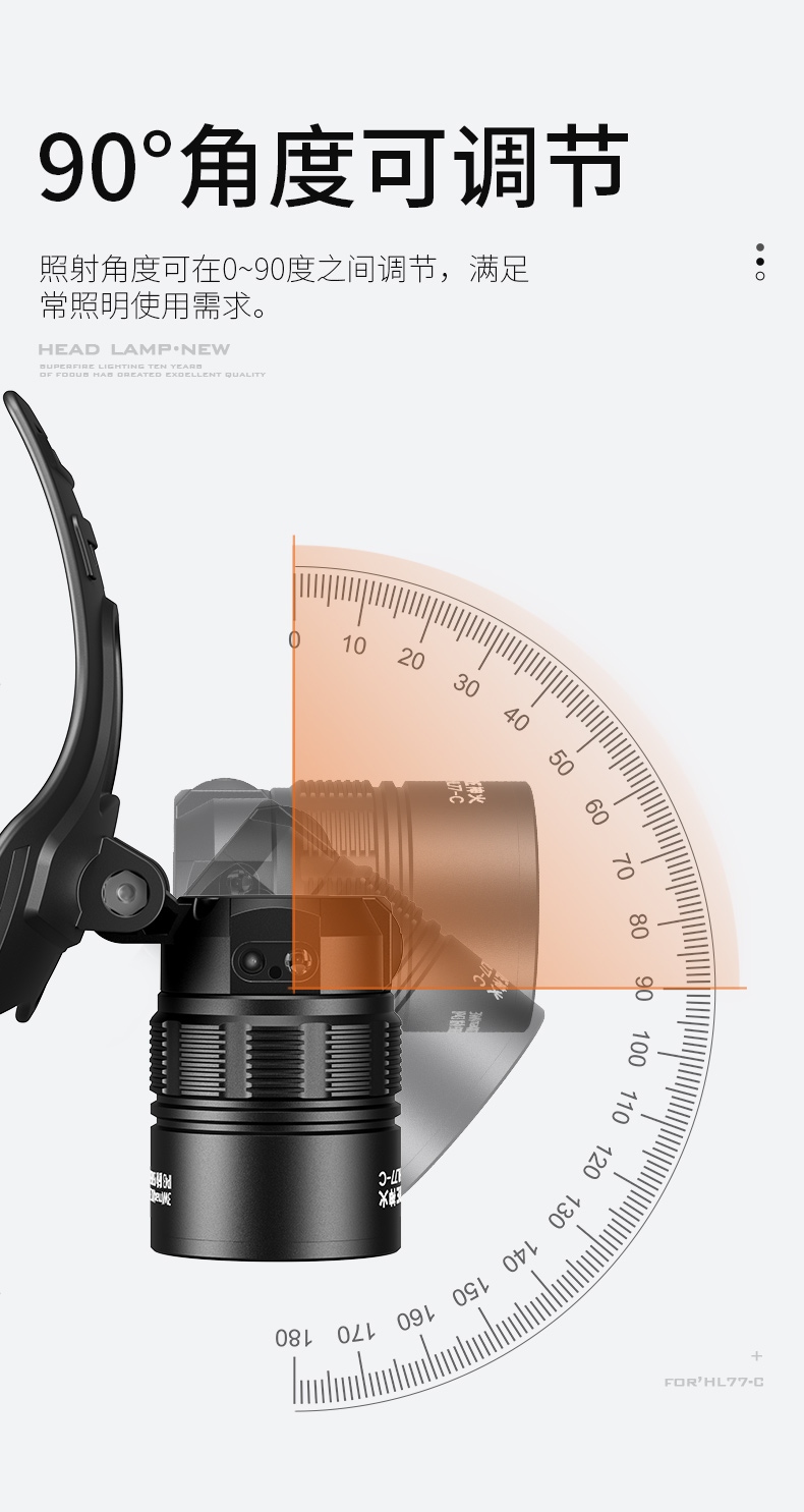 5.頭燈角度調節:超90°角度隨意調節,適宜各環境使用。