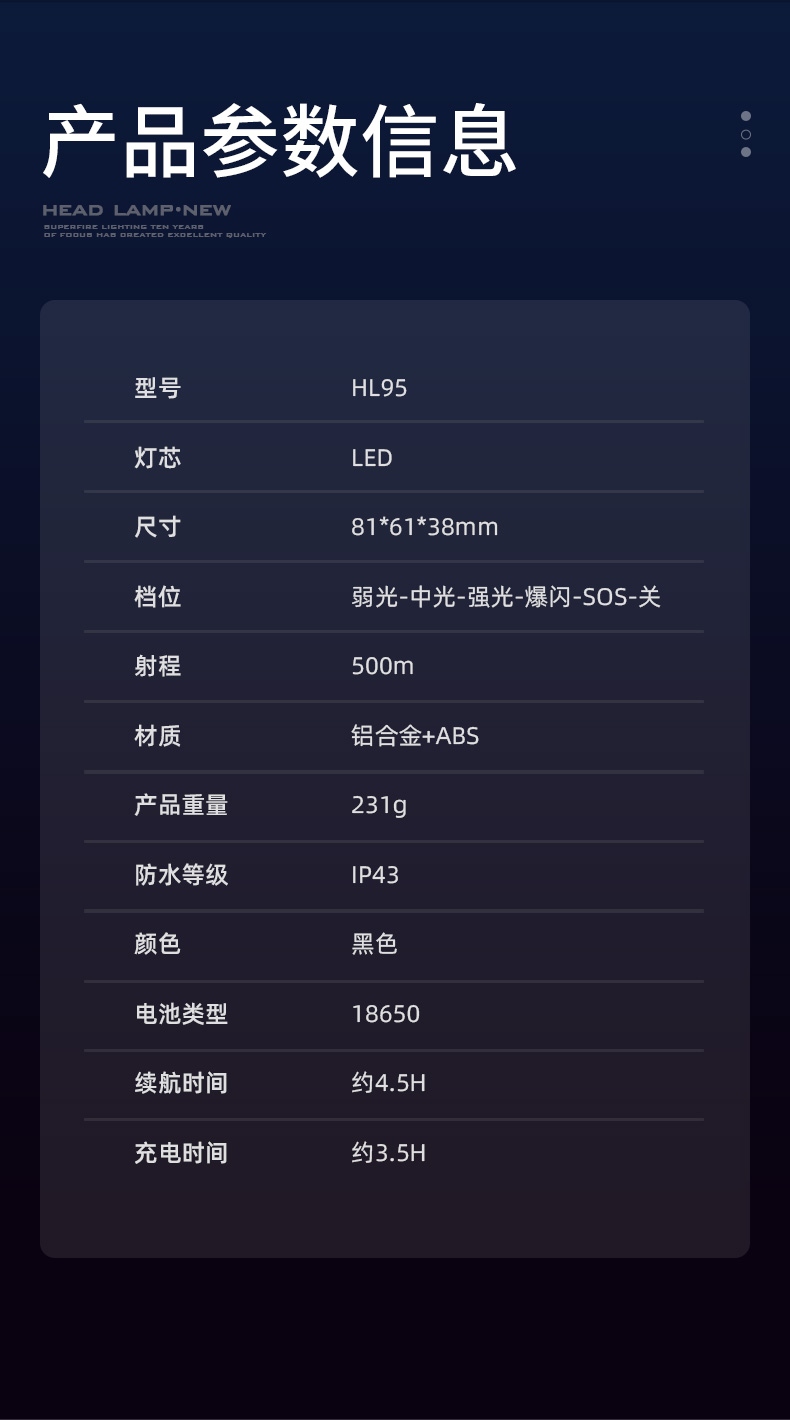 SUPERFIRE神火頭燈HL95