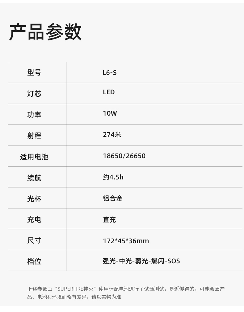L6姐妹款,26650電池高續航,中置開關大功率手電