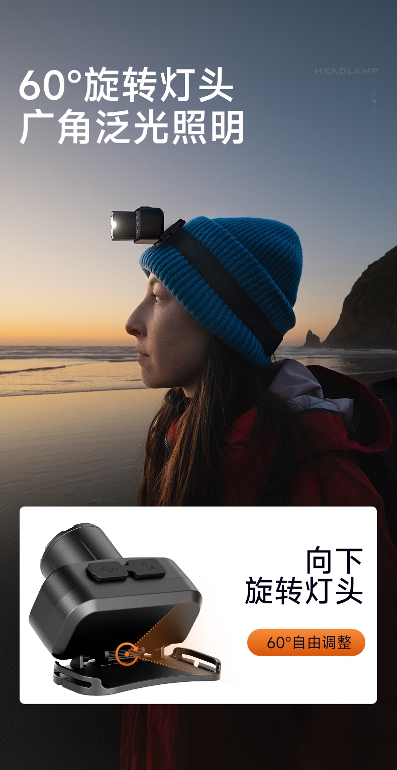 4.頭燈角度調(diào)節(jié):超60°角度隨意調(diào)節(jié),適宜各環(huán)境使用。