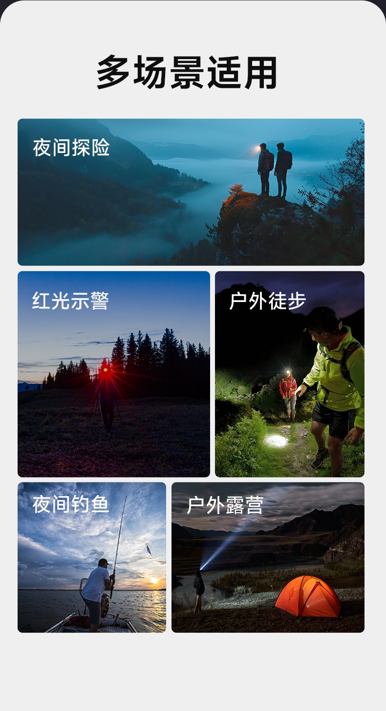 1.五檔一體:強(qiáng)中弱、爆閃、SOS自由切換,可滿足不同場景下的使用需求 。
