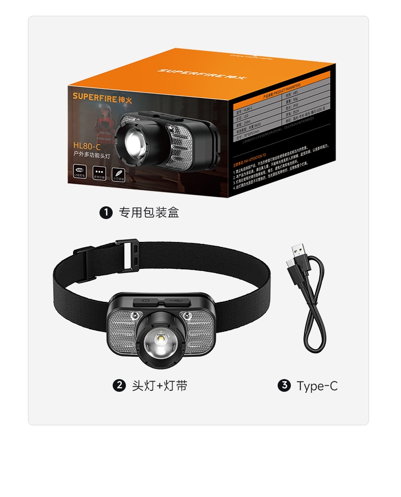 2.此款頭燈帶有紅常亮-紅光爆閃,可作警示作用。