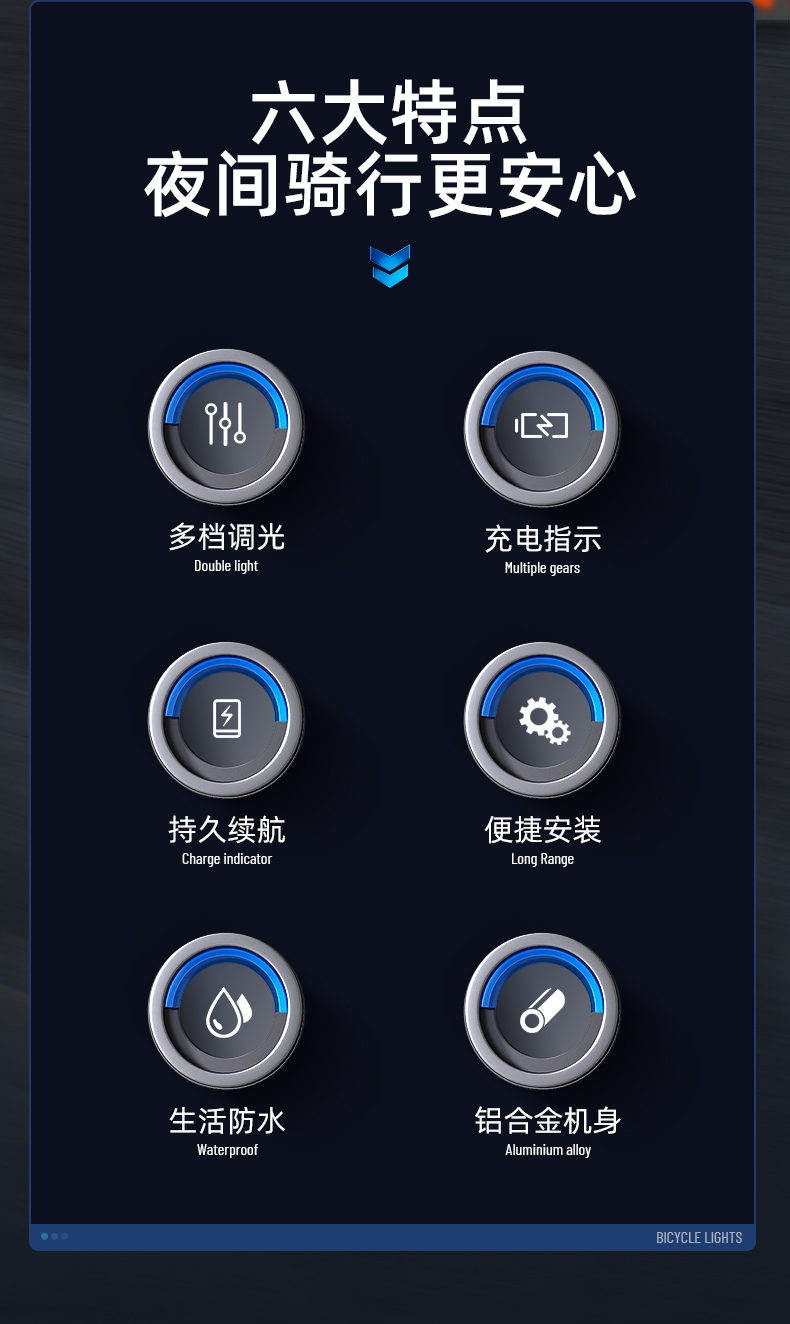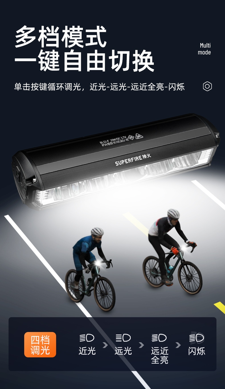 單擊按鍵循環調光,近光-遠光-遠近全亮-閃爍