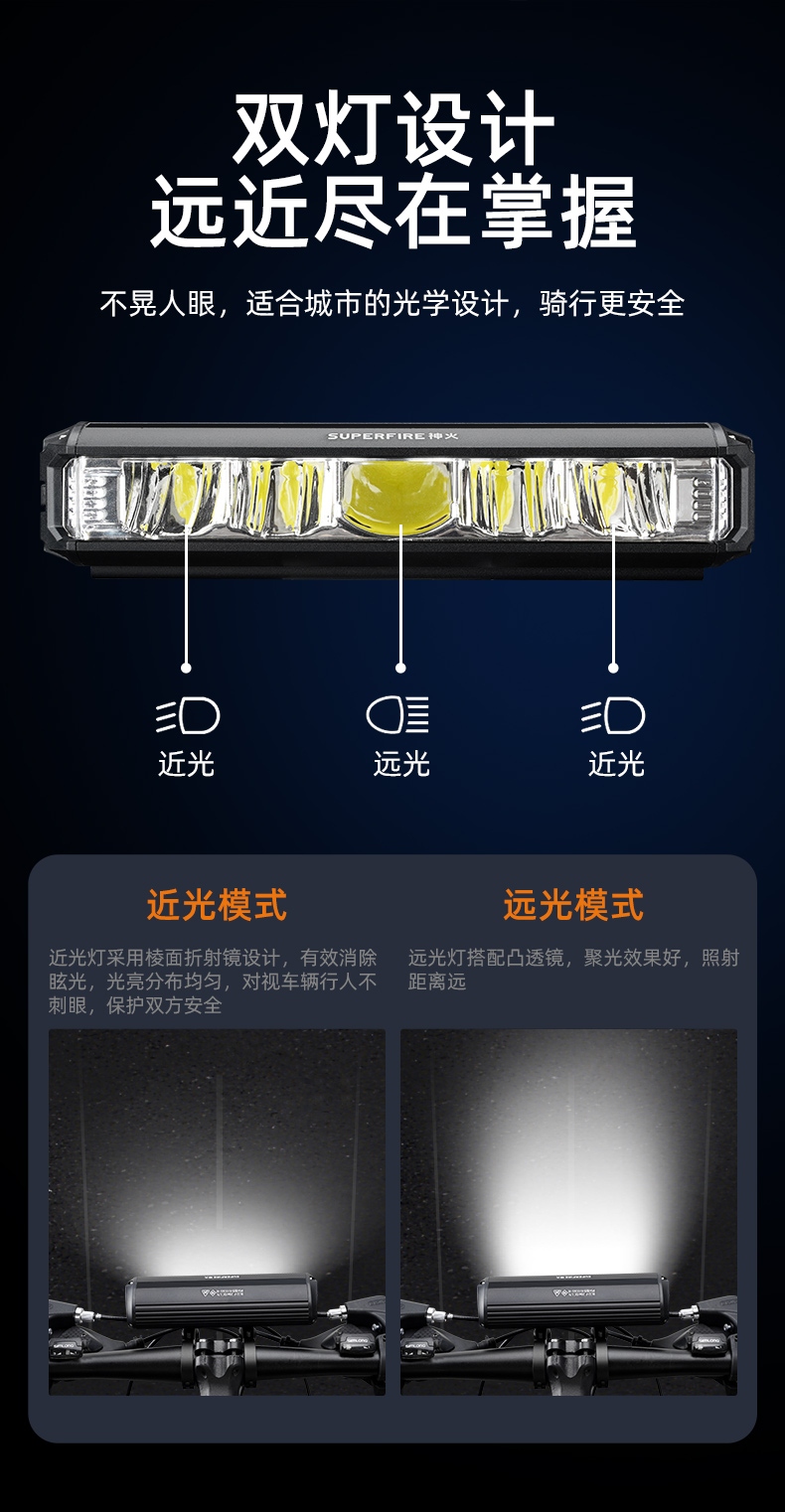 爆亮如晝無懼黑暗 以亮制勝,橫置安裝設計,有效提高燈光效率提升可視角度還能節省車把空間
