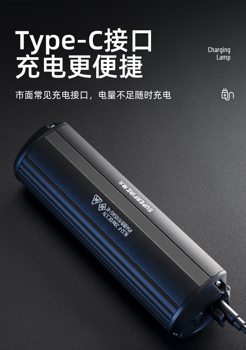 四檔調光 Type-C充電 電量顯示 鋁合金筒身 持久續航 強力防水