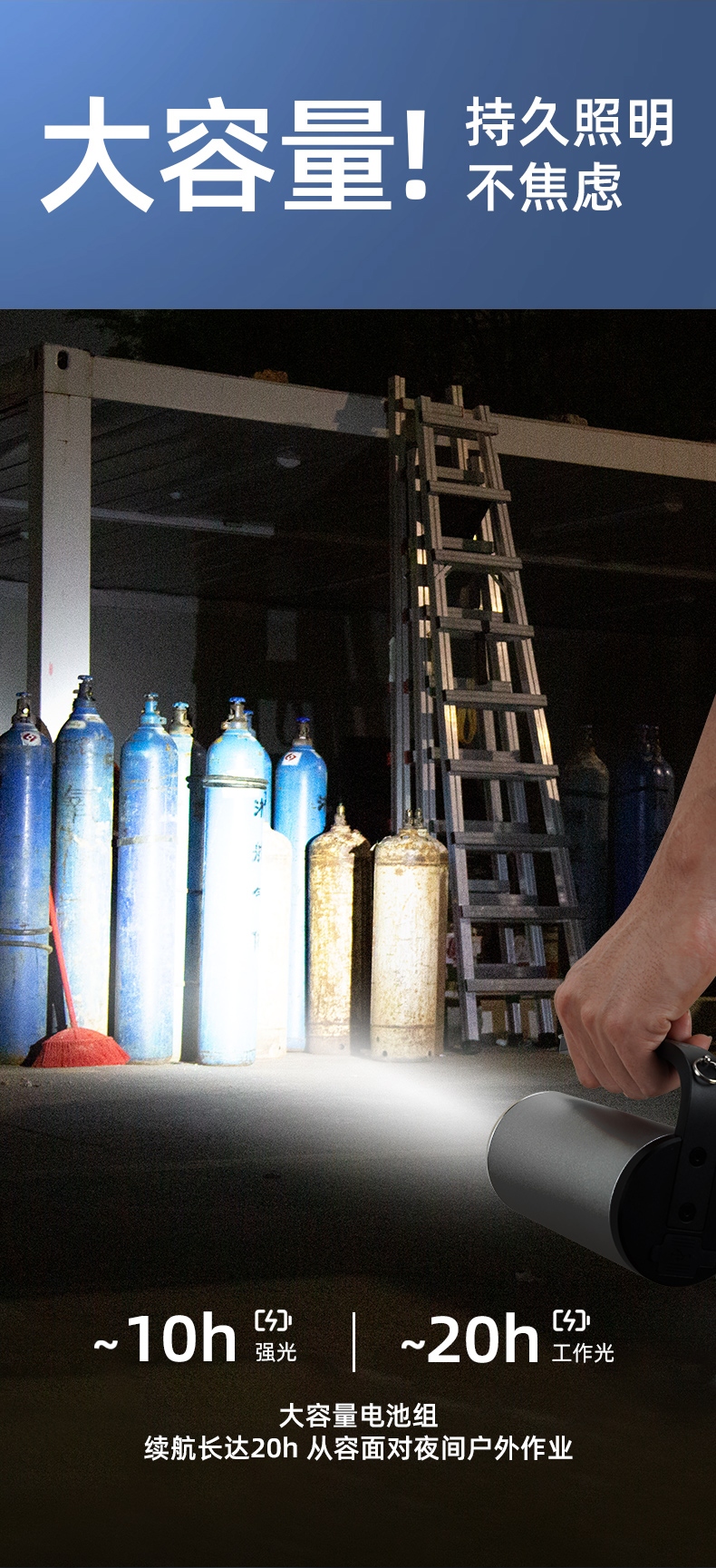 大容量電池組續(xù)航長達20h 從容面對夜間戶外作業(yè)