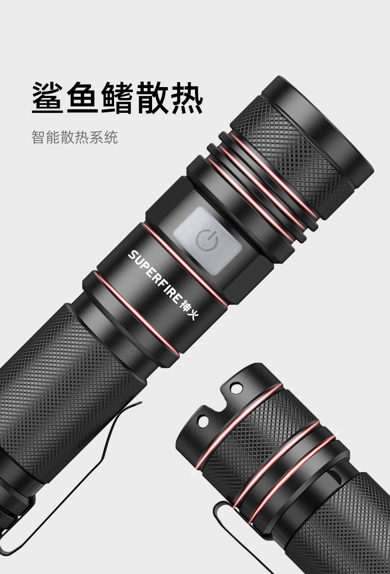 1、千米遠射,射程更遠,光斑更聚焦。 2、進口燈珠,亮度高,照明效果更好。 3、前后雙按鍵,光源一鍵點亮,高亮瞬間開啟。