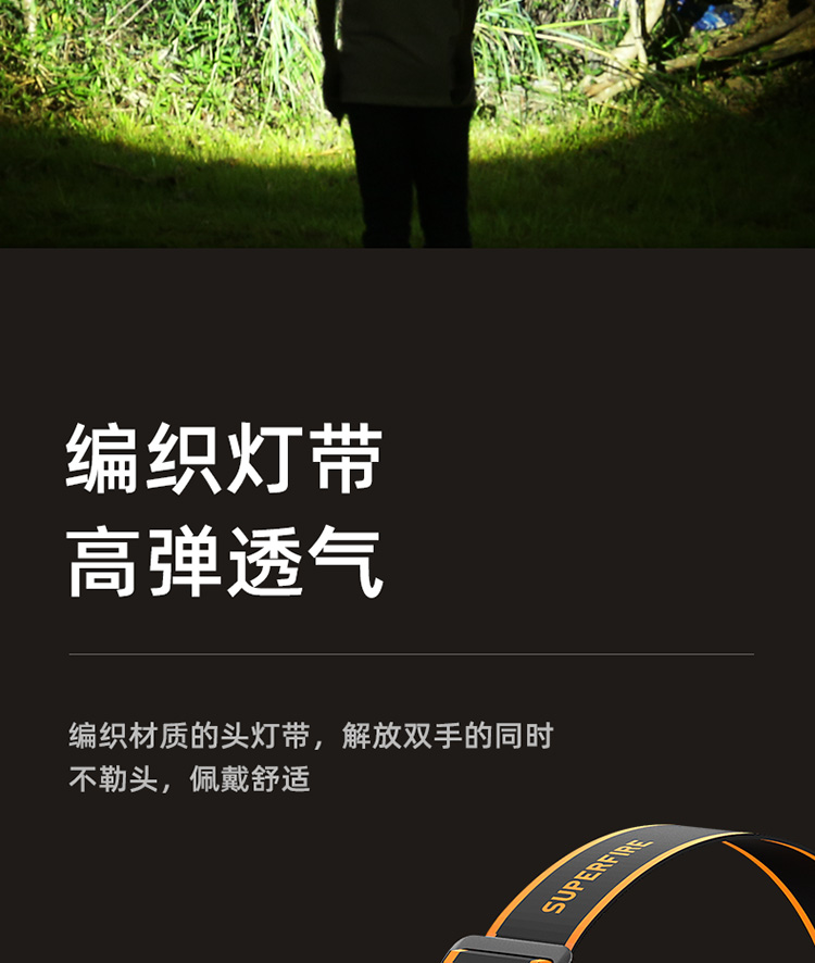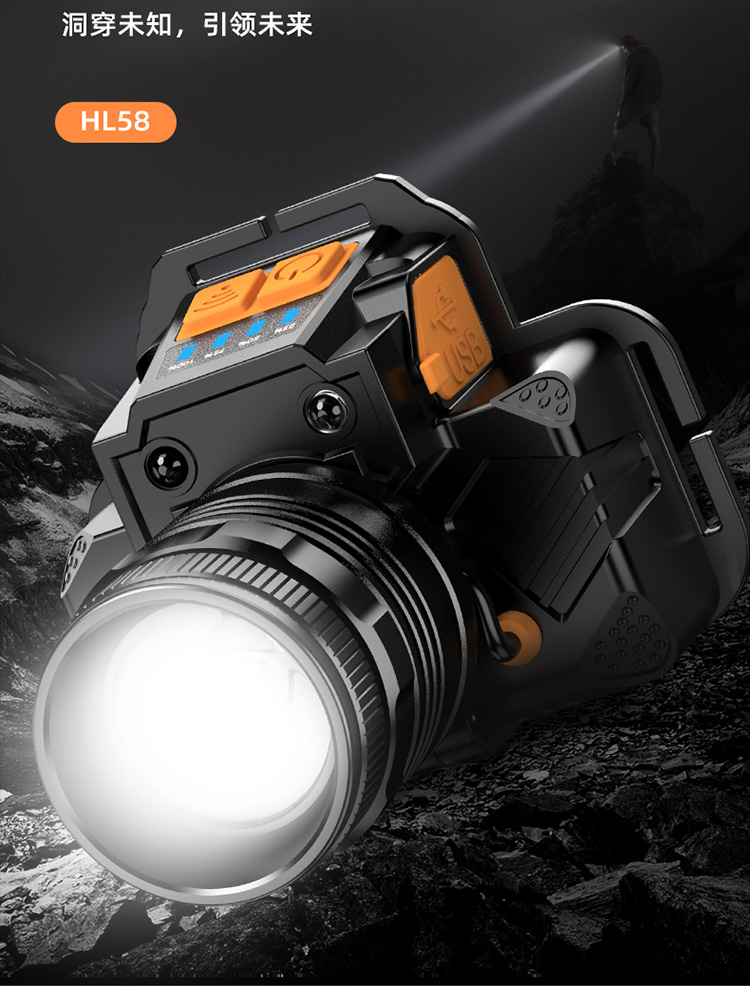 強光亮度,運動頭燈,前后均衡設計,輕便不壓頭,可調節式頭燈帶,佩戴方便舒適,伸縮調焦,光照范圍大,照射距離遠,頭燈角度調節,超90度角度隨意調節,適宜各種環境使用