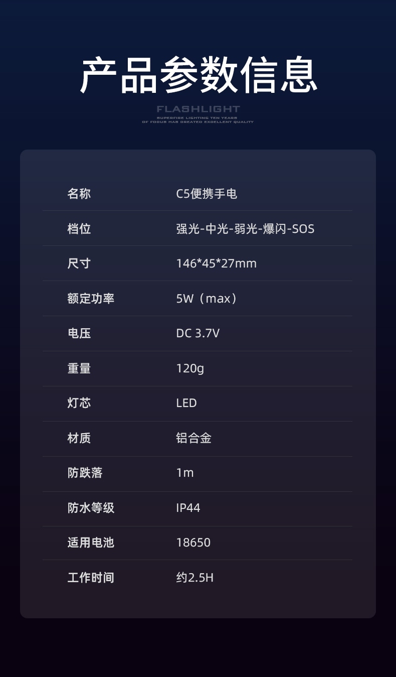 四檔調(diào)光 Type-C充電 電量顯示 鋁合金筒身 持久續(xù)航 強(qiáng)力防水