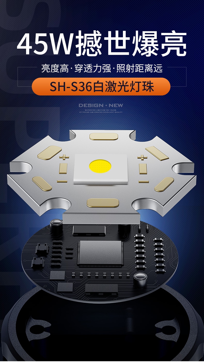 3、新型高亮遠射燈珠,45W大功率,亮度高,照明效果好。