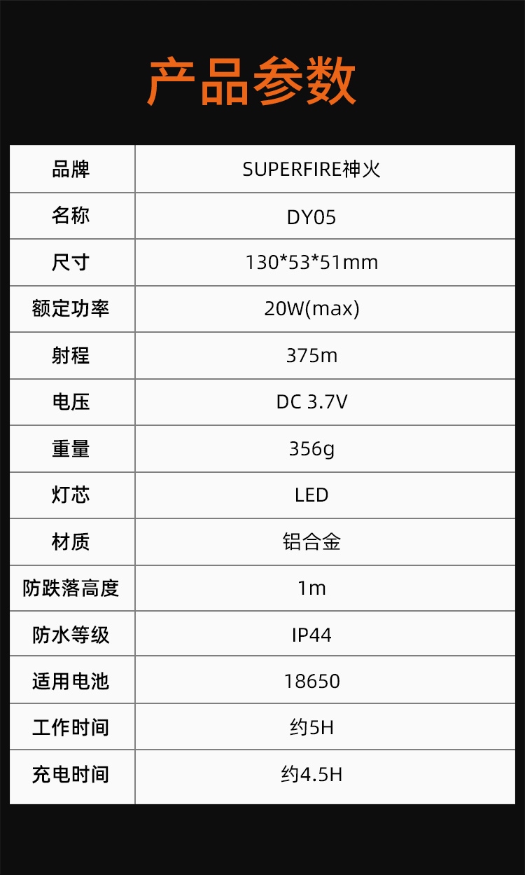 1、千米遠射,射程更遠,光斑更聚焦。 2、進口燈珠,亮度高,照明效果更好。 3、前后雙按鍵,光源一鍵點亮,高亮瞬間開啟。