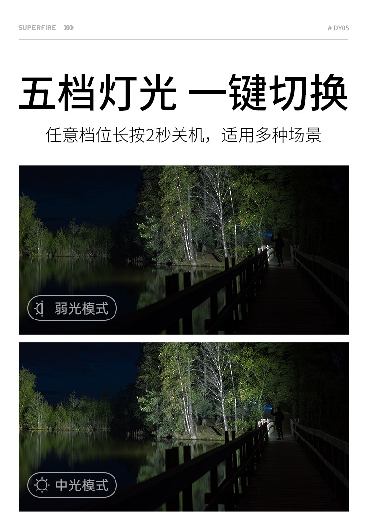 1、六檔調光,可滿足不同使用場景下的照明需求。 2、進口高亮朗明納斯燈珠,照明效果更好。 3、含檔位記憶,任意檔位快捷關機 ,開機恢復關機前檔位。