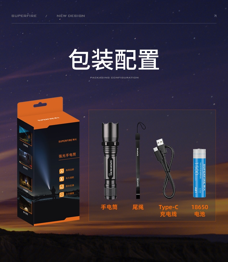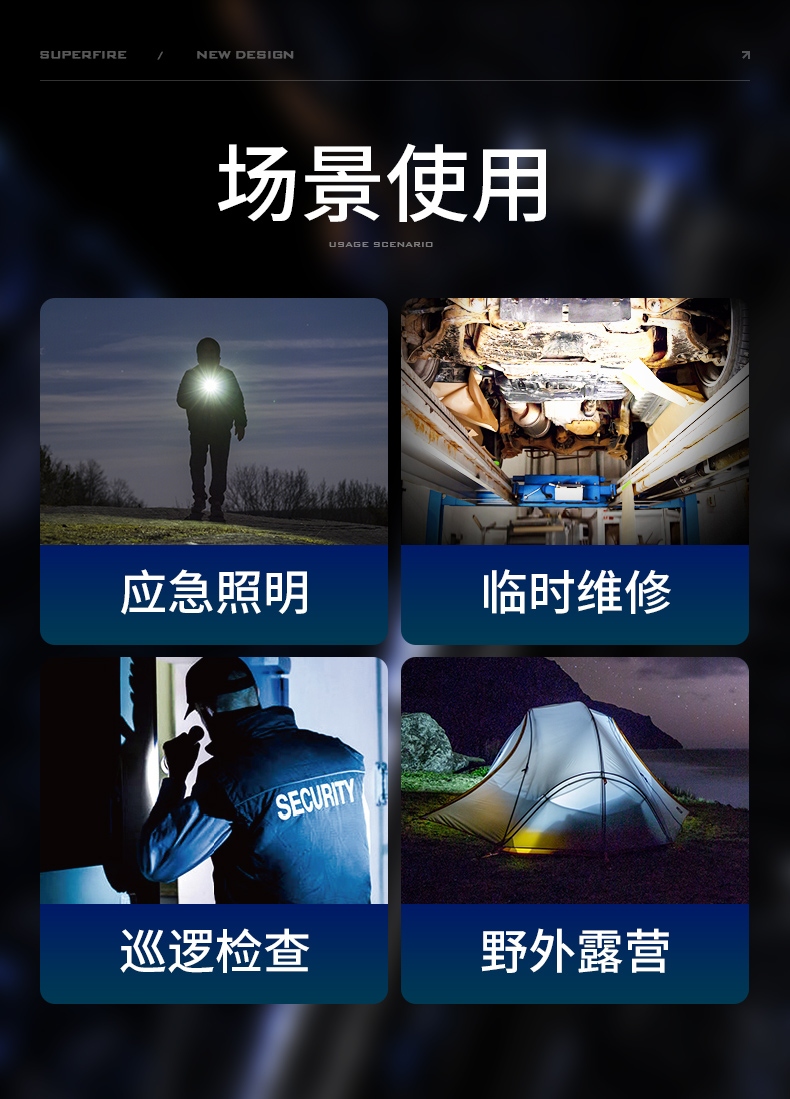 4、定焦手電,單手操控,簡(jiǎn)單方便。