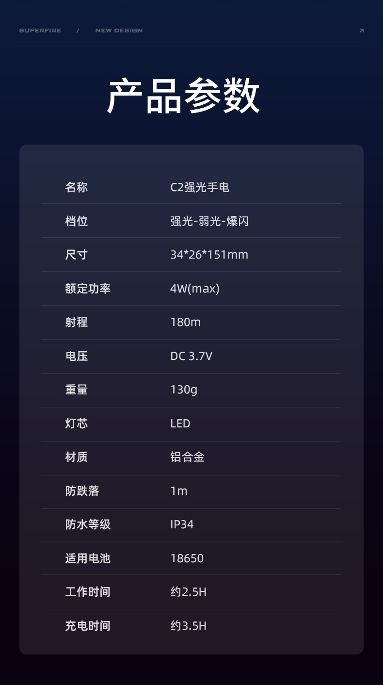 6、鋁合金筒身,防水耐摔。