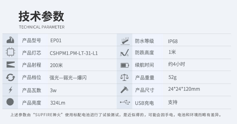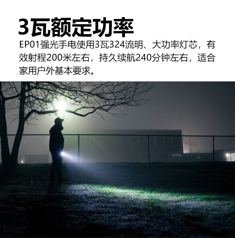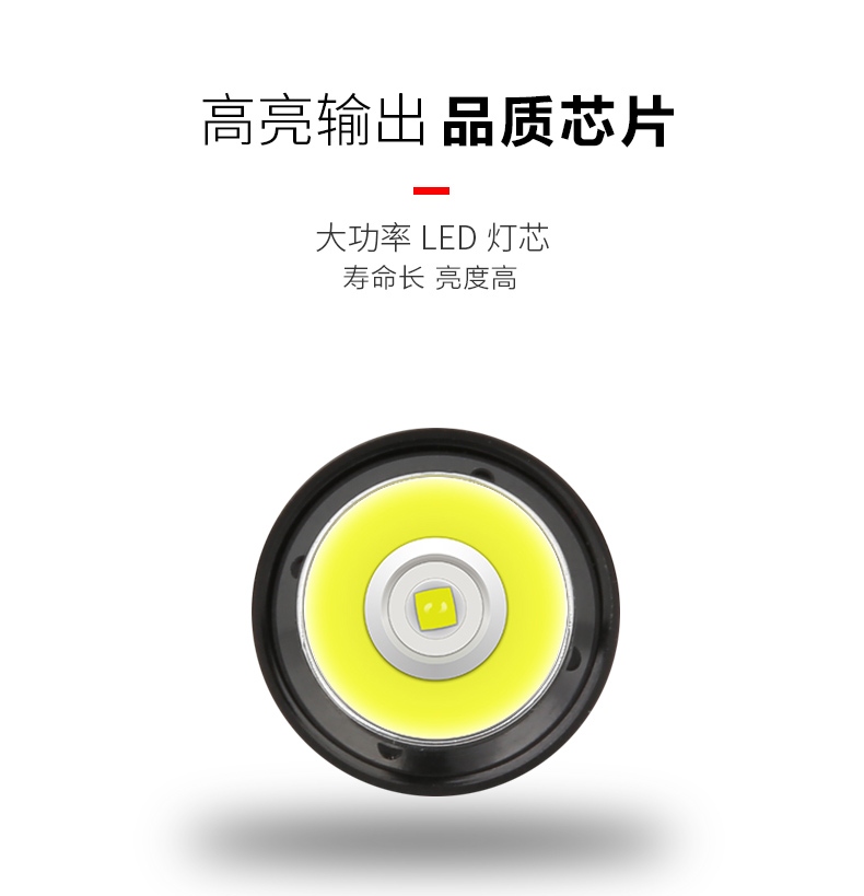 聚光主燈 亮度隨心 輕按后端開關(guān)按鈕,主燈強(qiáng)光點(diǎn)亮,續(xù)按依次切換主燈工作光-爆閃光。主燈開啟狀態(tài)下長按5秒,可實(shí)現(xiàn)光源色溫轉(zhuǎn)換。主燈關(guān)閉狀態(tài)下長按5秒,可開啟燈具最亮照明模式。 爆亮強(qiáng)光 亮如白晝 1500LM大功率高亮光源,點(diǎn)亮頃刻如白晝