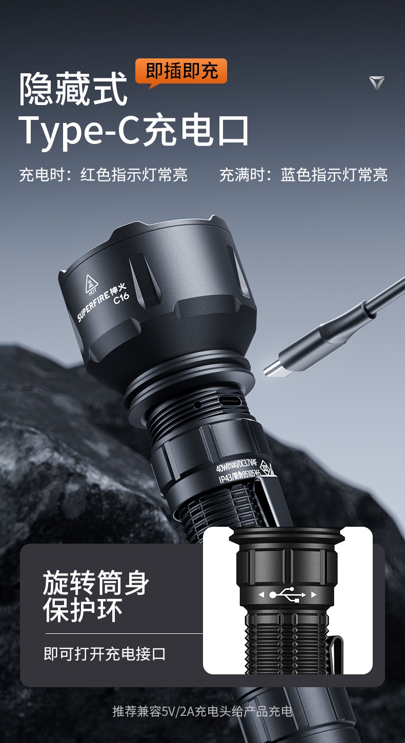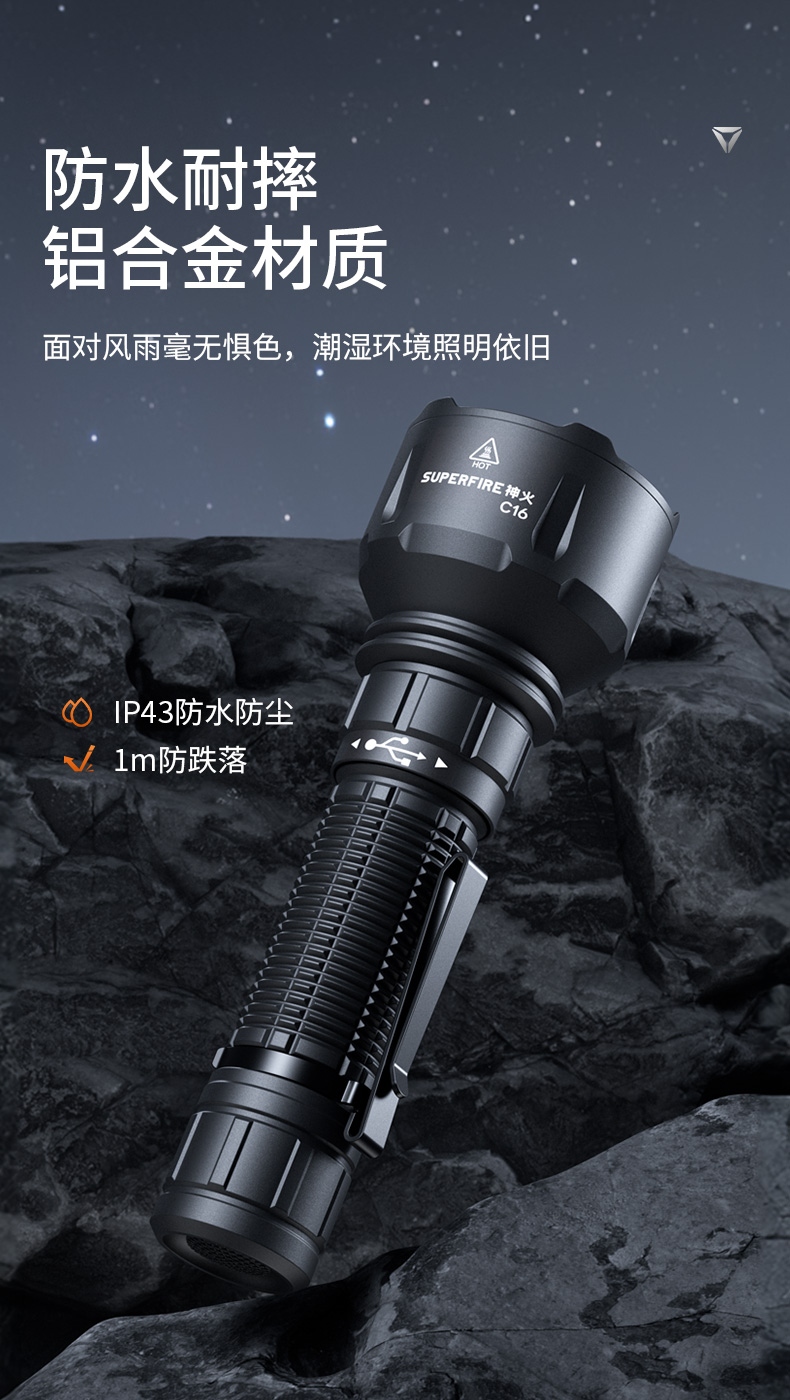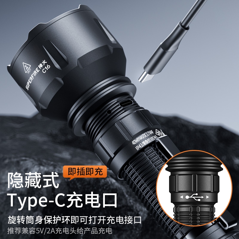 四檔調光 Type-C充電 電量顯示 鋁合金筒身 持久續航 強力防水