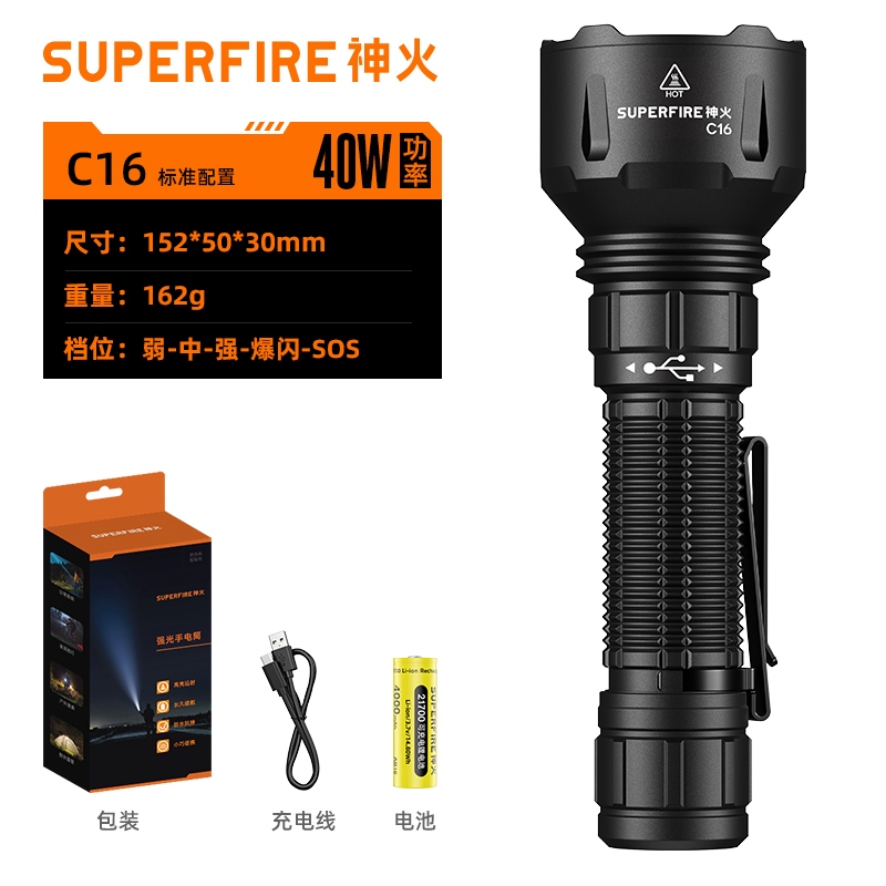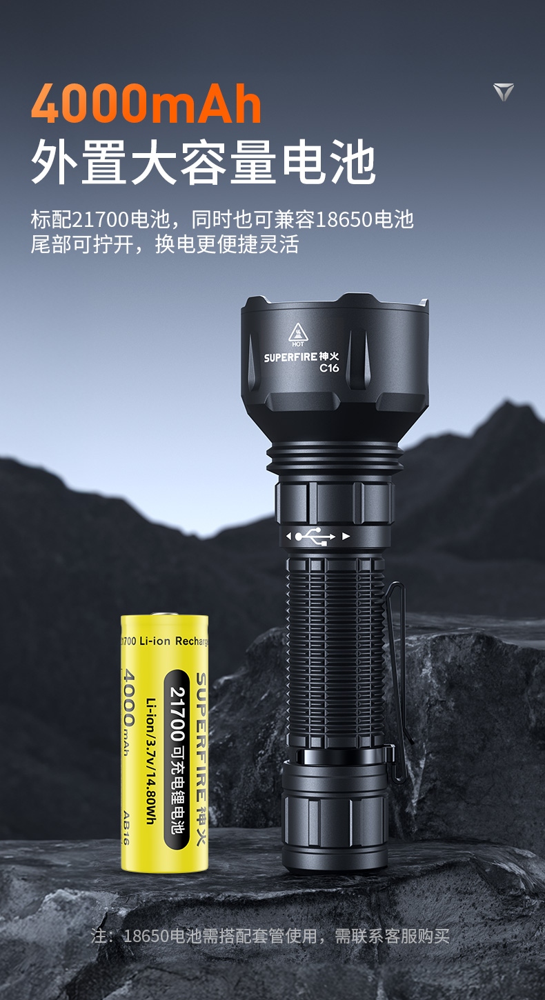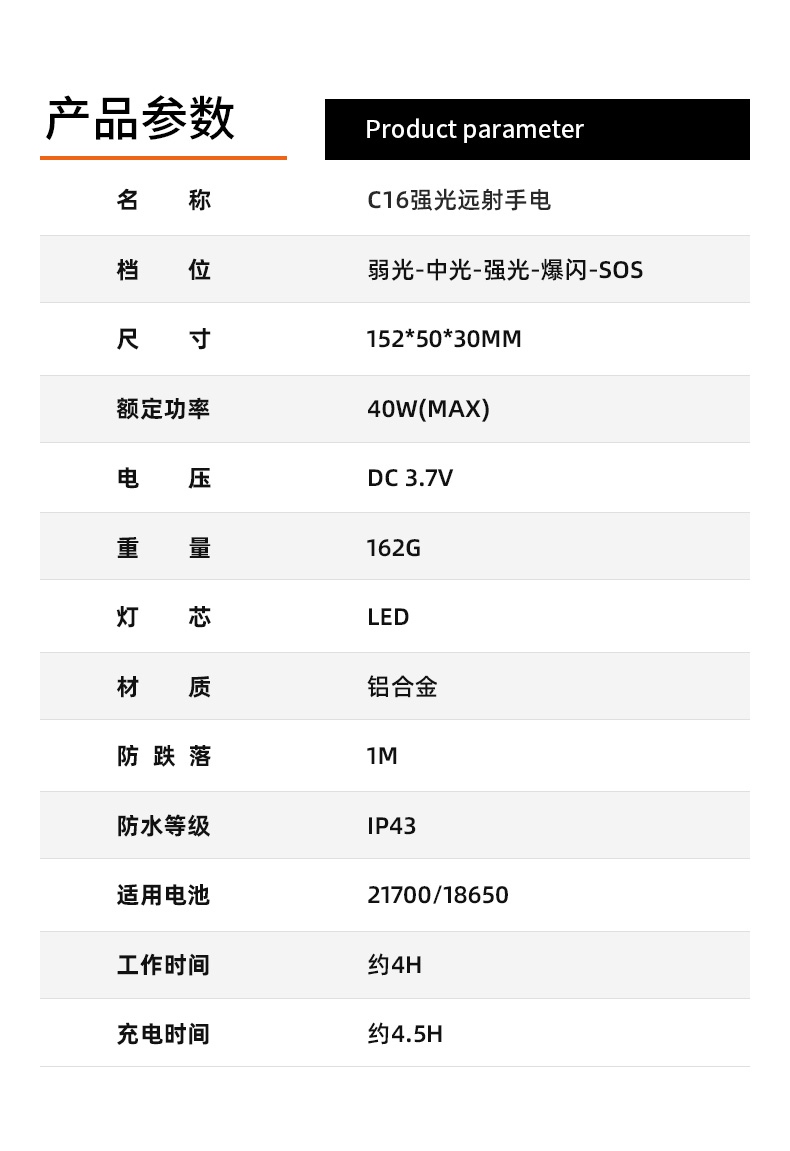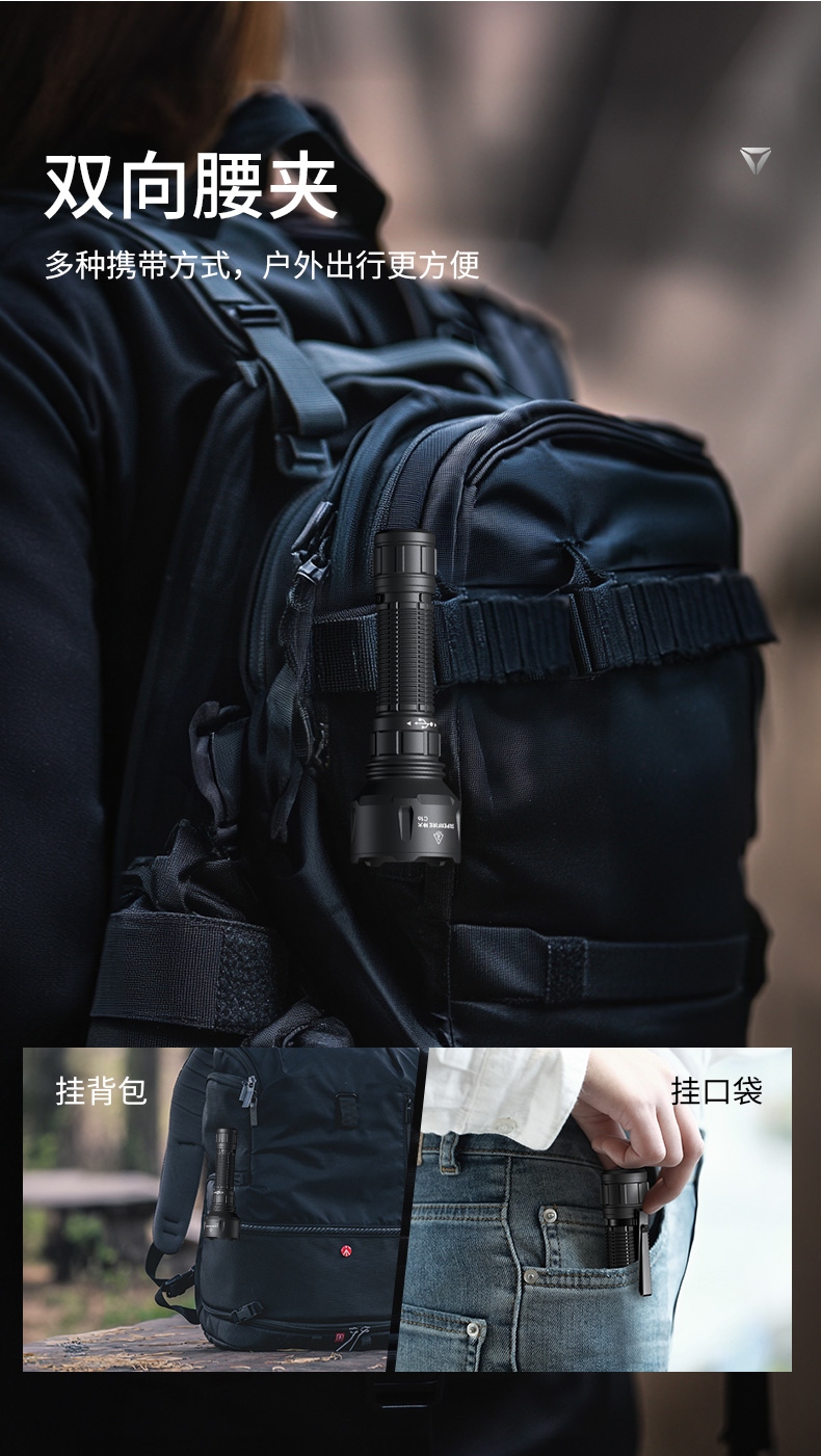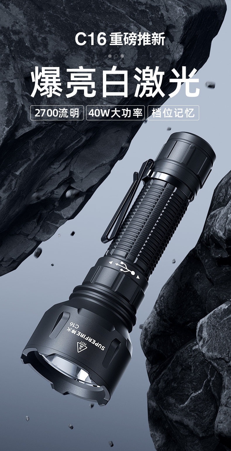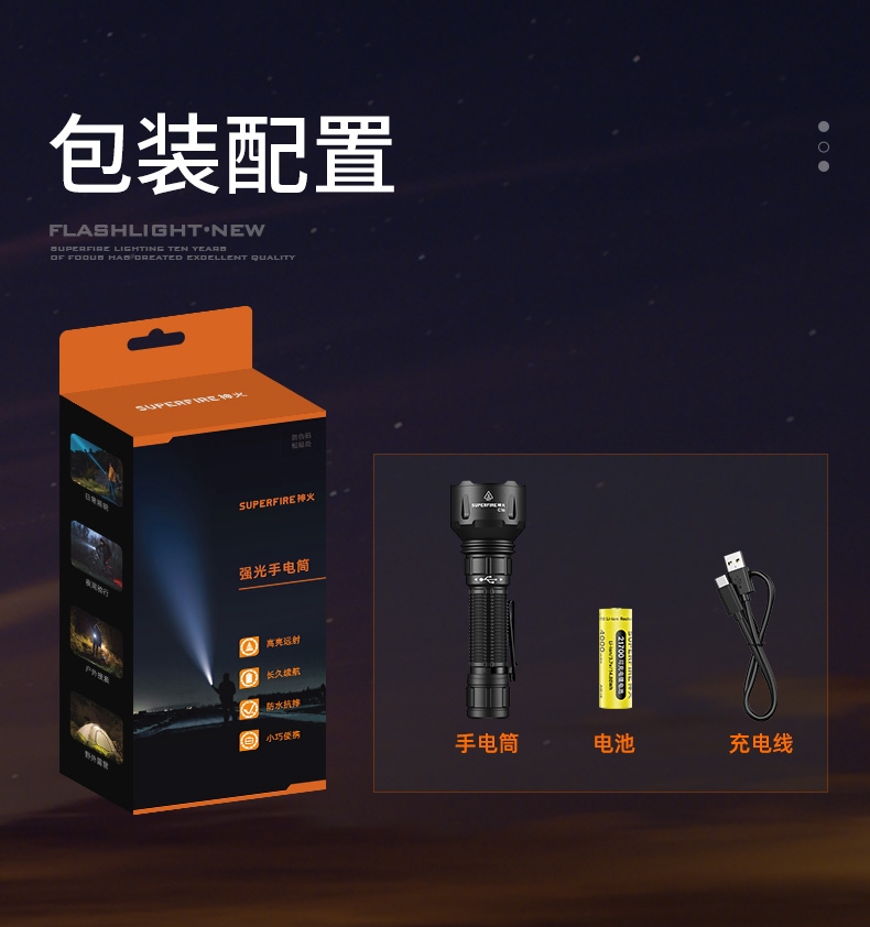 1、千米遠射,射程更遠,光斑更聚焦。 2、進口燈珠,亮度高,照明效果更好。 3、前后雙按鍵,光源一鍵點亮,高亮瞬間開啟。