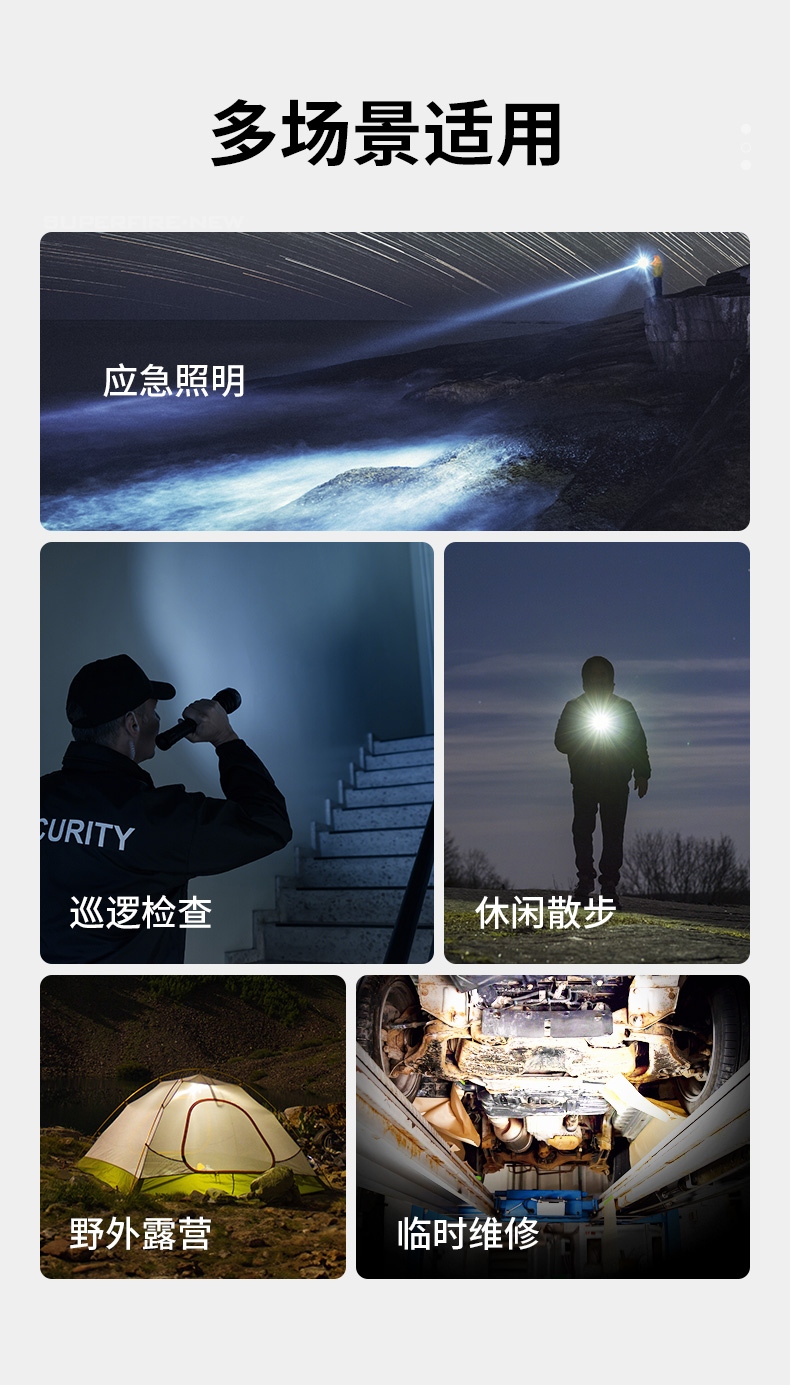 1、多檔調光,可滿足不同使用場景下的照明需求; 2、含提手,握感更舒適。攜帶更簡單; 3、新型高亮遠射燈珠,60W大功率,亮度高,照明效果好。