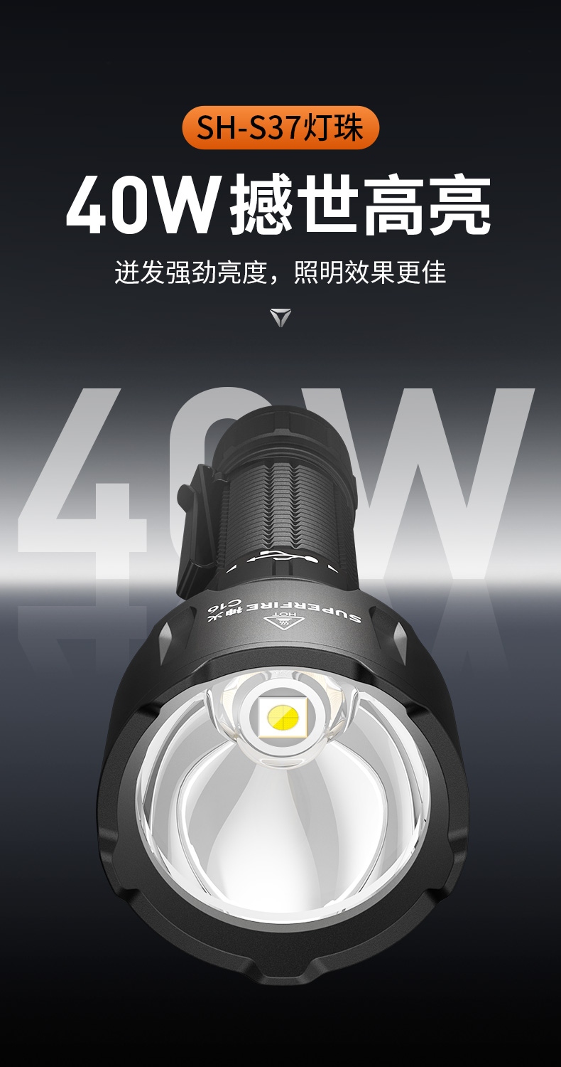 3、新型高亮遠射燈珠,40W大功率,亮度高,照明效果好。
